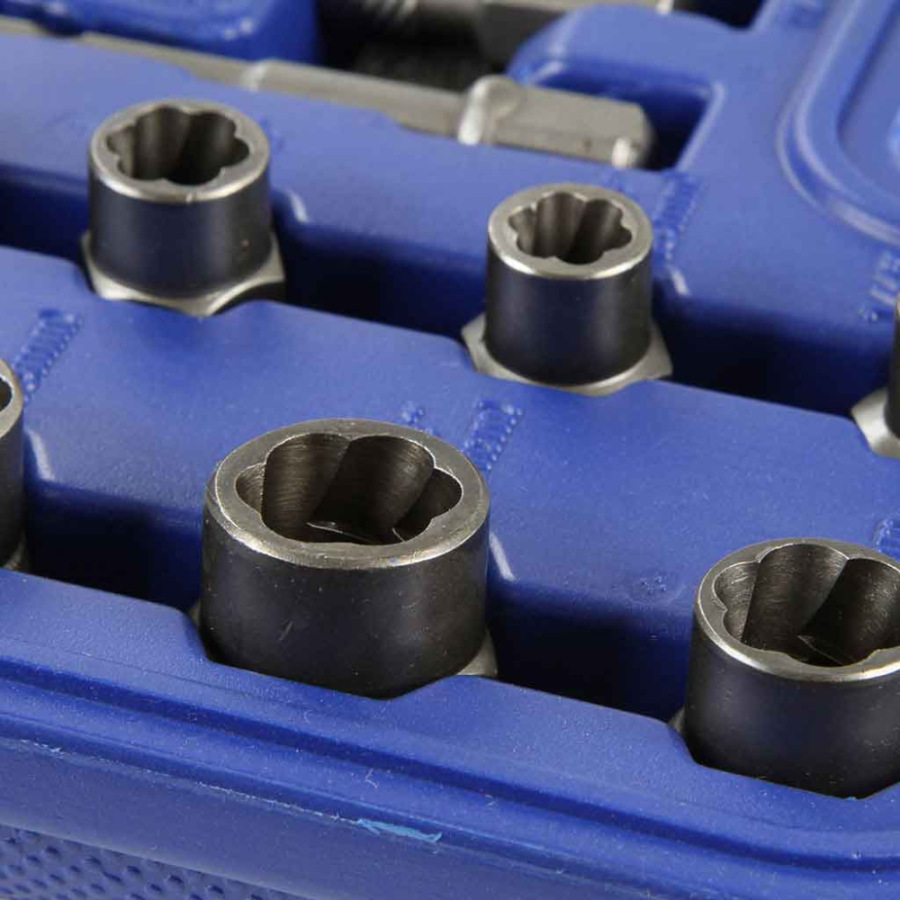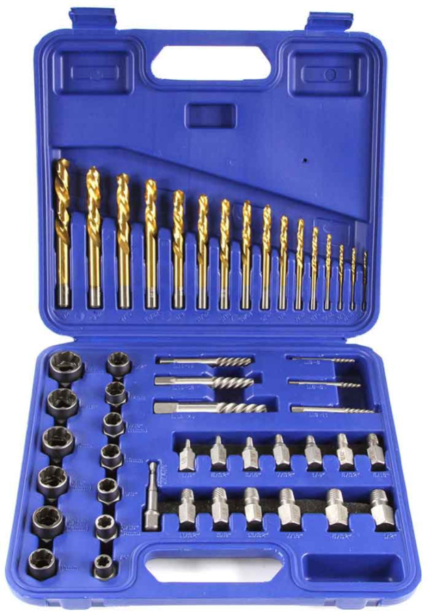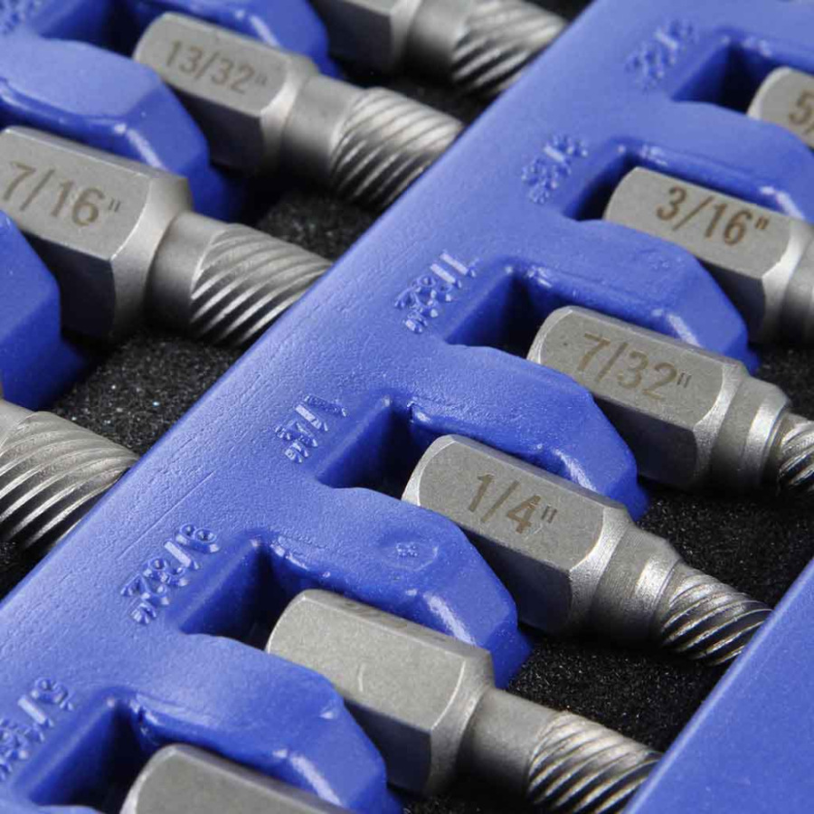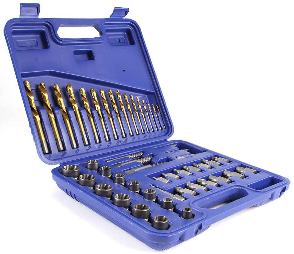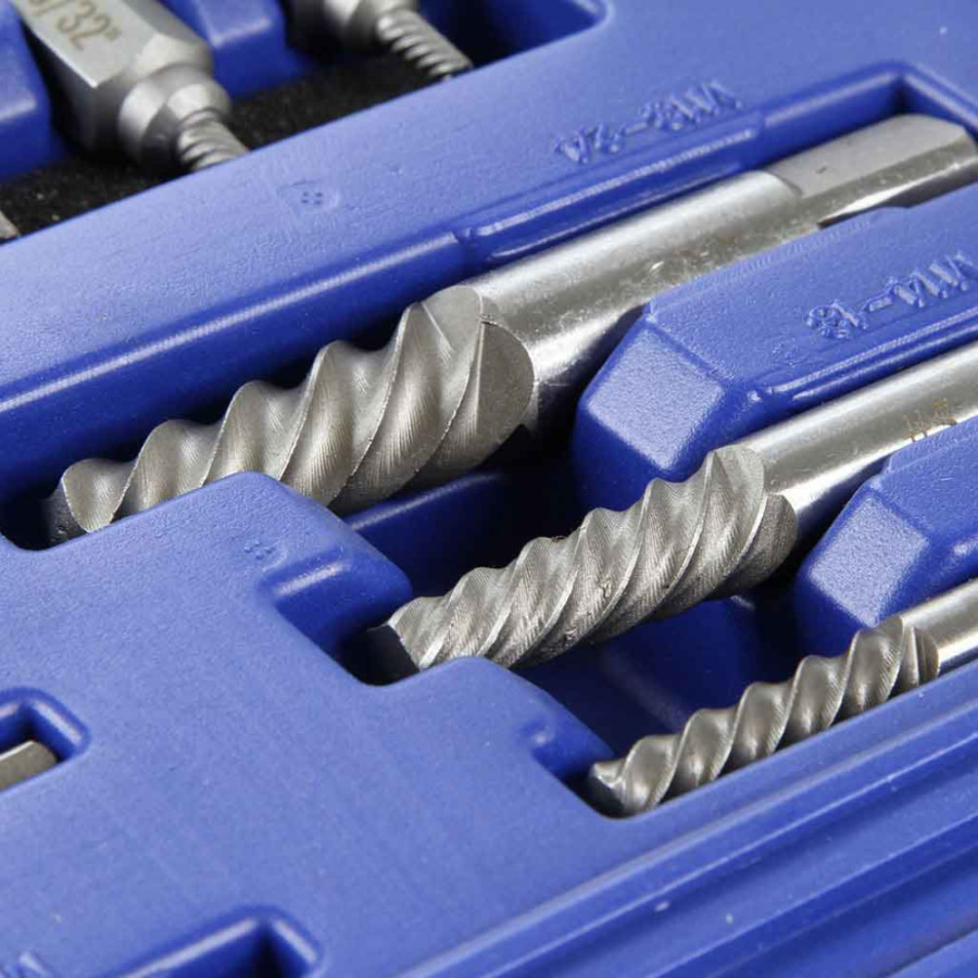Sada na vyťahovanie poškodených skrutiek je ideálnym produktom na odstránenie poškodených čapov, skrutiek, mazacích armatúr a podobných prvkov.