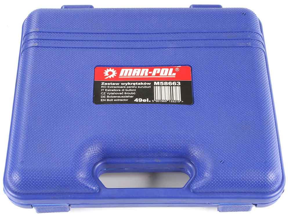 Sada vyťahovačov zalomených skrutiek a poškodených matíc, 49-dielna, MAR-POL