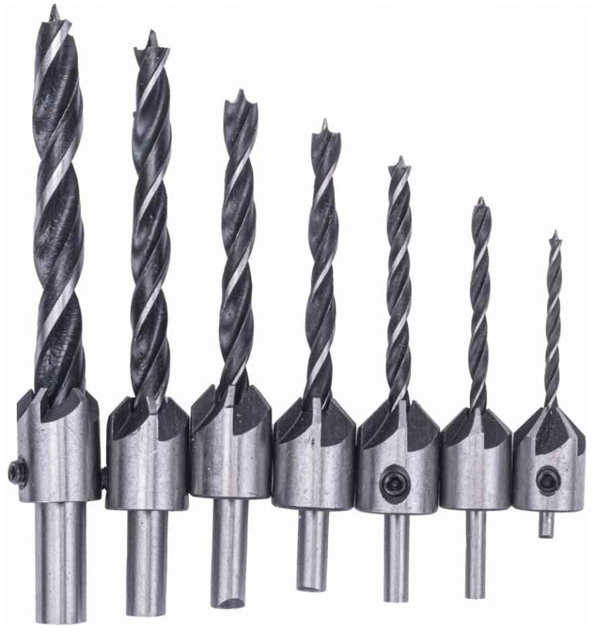 Sada záhlbnikov do dreva s vrtákmi 7-dielna, upínanie valcová stopka, POWERMAT