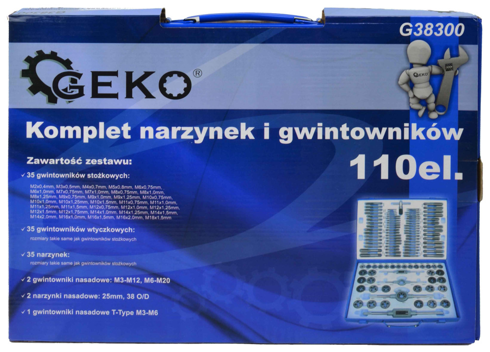 Sada závitníkov a závitových očiek 110- dielna v kazete M2-M18, GEKO