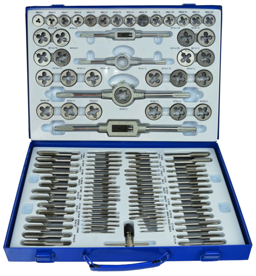 Sada závitníkov a závitníkov s príslušenstvom.