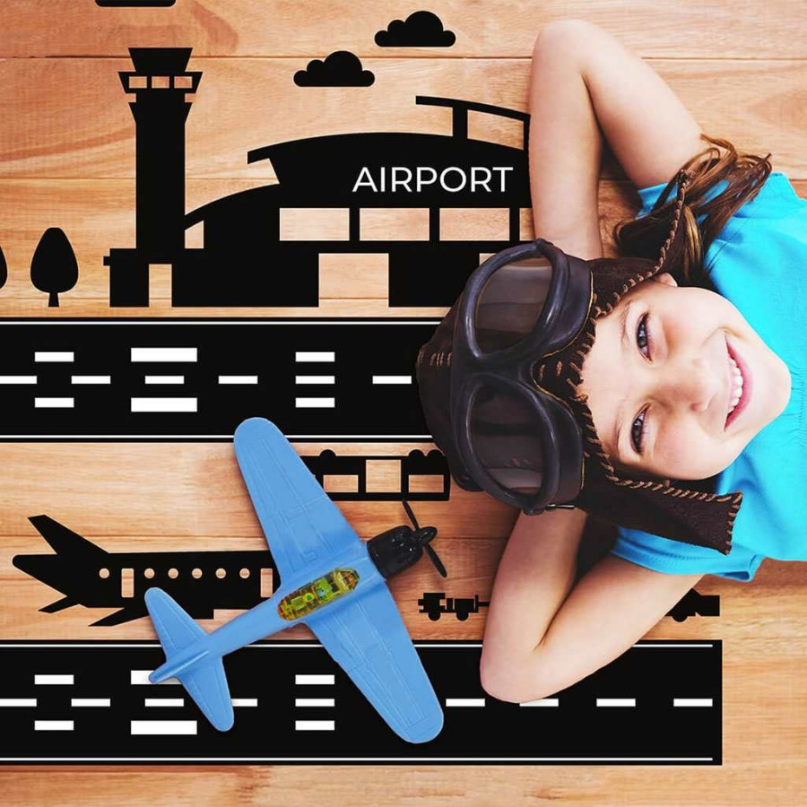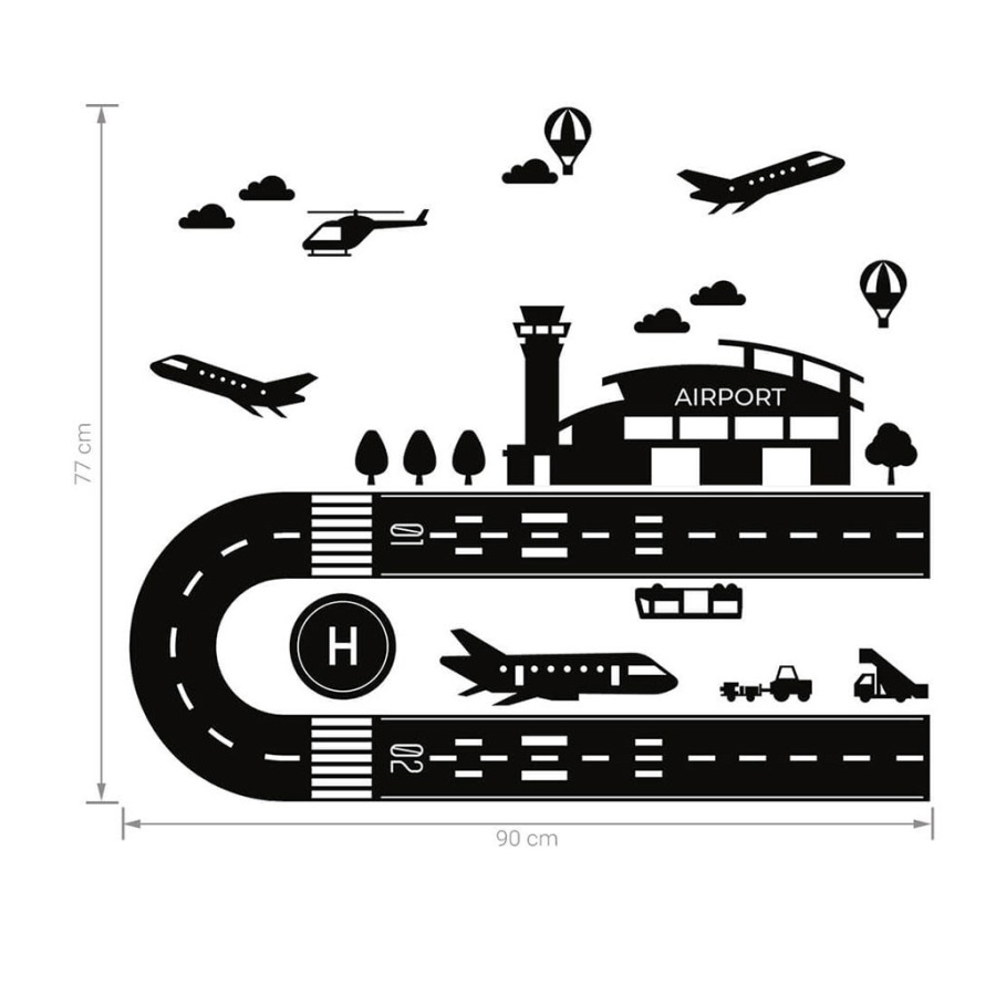 Krásna nálepka na podlahu Letisko. Letiskový podlahový ticker bol vytvorený pre fanúšikov nebeských dobrodružstiev. Veď kto v našom detstve nechcel byť pilotom :). Pomáhame plniť tieto sny a zároveň zaručujeme nadpozemskú zábavu bez toho, aby sme zaberali zbytočné miesto v detskej izbe. Náš produkt je jedinečný a jediný svojho druhu. Vyrobené zo špeciálnej fólie a matného laminátu, vďaka ktorému je jeho povrch odolný a nezmazateľný. Samolepka je vhodná na podlahu, ale je možné ju aplikovať aj na akýkoľvek iný hladký povrch, ako sú steny alebo nábytok. Nečakajte dlhšie. Doprajte svojmu dieťaťu mimoriadnu zábavu a skráťte si čas na upratovanie. Táto sada obsahuje: letisko (90x77 cm) a doplnkové prvky. Presné rozmery sú uvedené na poslednej fotografii.