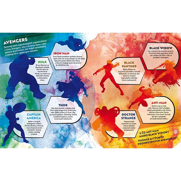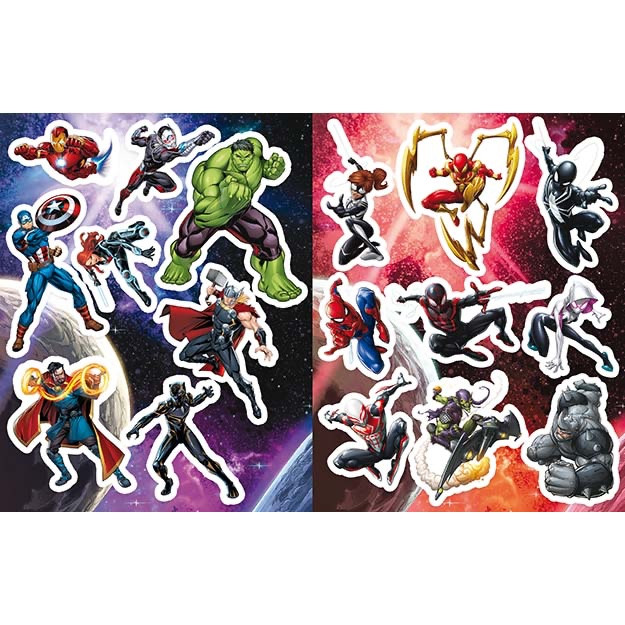 Samolepková knižka Marvel. Samolepková knižka obsahuje 16 farebných strán a 8 strán samolepiek na dolepenie.