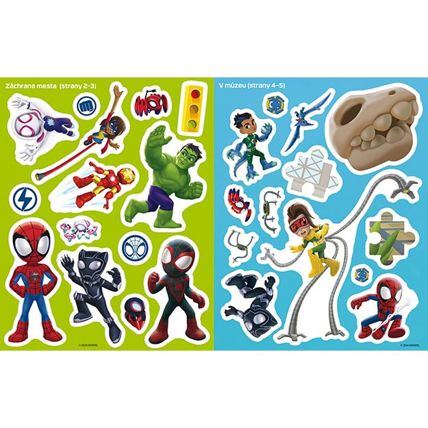Samolepková knižka Spidey, obsahuje 16 farebných strán a 8 strán samolepiek na dolepenie. Veľkosť zošita je 275 X 215 X 4 mm. Cena je za kus. Vhodné pre det vo veku 3+ rokov.