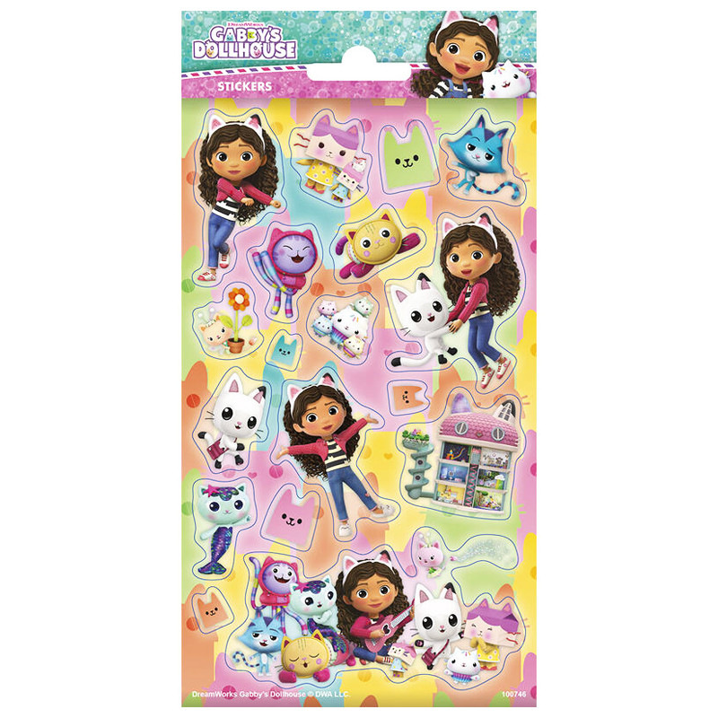 Samolepky Gabbys Dollhouse, rozmer karty je 20 x 10,2 cm. Vhodné pre deti 3+.