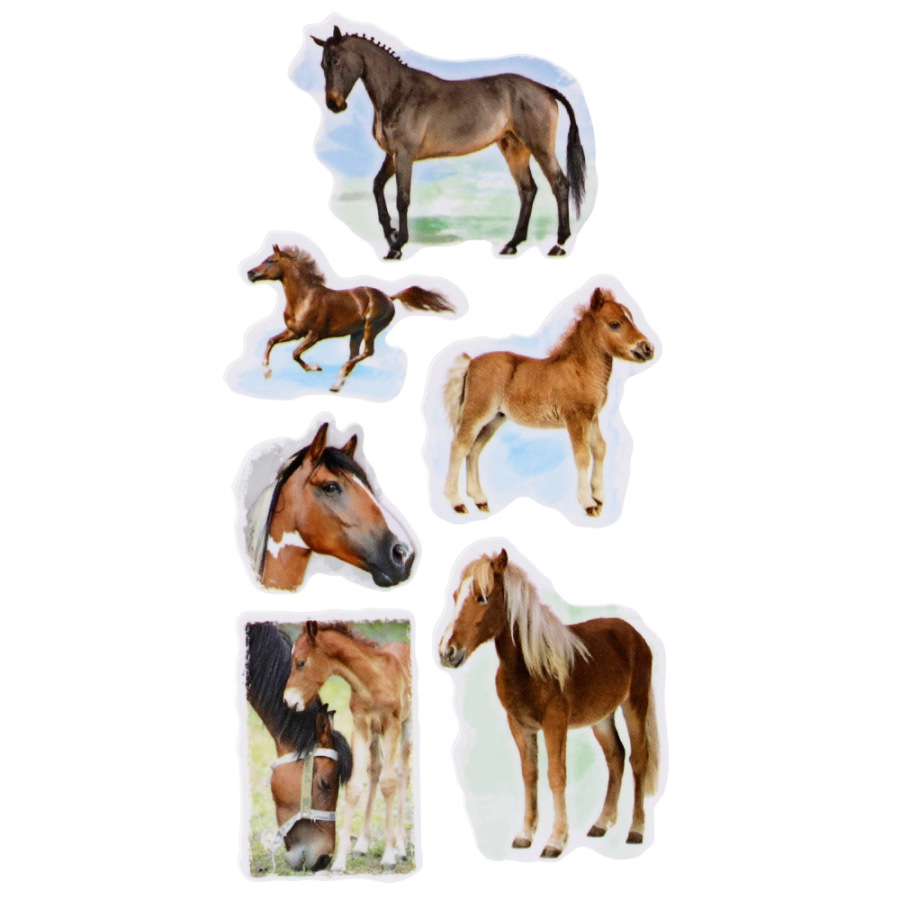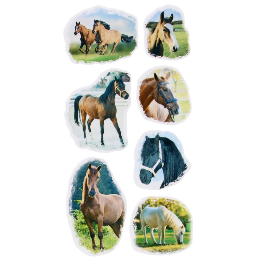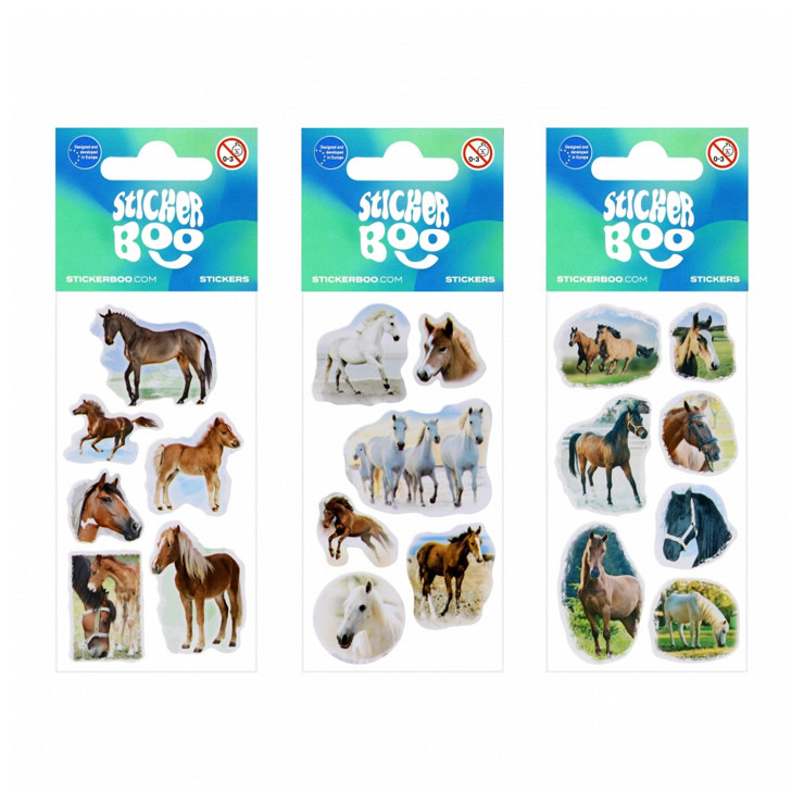 Samolepky s grafikou s koňmi. Dostupné v 3 grafických verziách. Cena za 1 kus. Rozmery produktu sú 18x7cm.