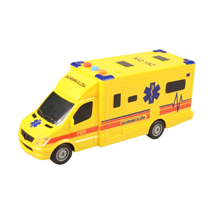 Skvelá hračka pre chlapcov aj dievčatá je záchranná služba v českom designe. Auto po stlačení tlačidla simuluje hlásenie medzi posádkou ambulancie a dispečingu.Súčasťou je funkčný maják. Pohon na zotrvačník. Auto je napájané batériami 3x AG13 (sú súčasťou balenia). Veľkosť auta cca 19 cm. Vhodné pre deti od 3 rokov.