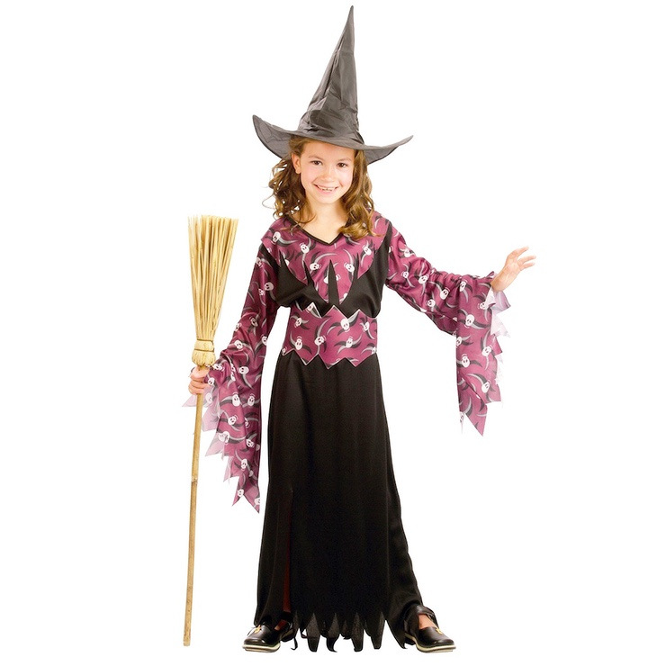 Karnevalový kostým - Čarodejnica, 120 - 130 cm. Kostým je vhodný pre dievčatá vo veku 5-9 rokov.