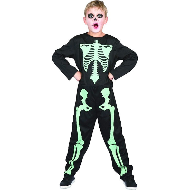 Šaty na karneval - kostra svietiaca v tme, 110 - 120 cm. Kostým je vhodný pre chlapcov vo veku 4-6 rokov.