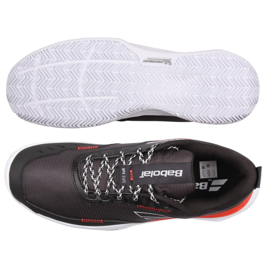 Tenisové topánky pre mužov Babolat SFX EVO Clay Men sú vhodné pre rekreačných aj pravidelných hráčov, ktorí hrajú na antukových kurtoch. Priedušný a pružný zvršok poskytuje počas hry čo najväčšie pohodlie a výkon počas hry. Tento model je navrhnutý s väčším priestorom na prednú časť chodidla. Stielka OrthoLite® je navrhnutá tak, aby kopírovala tvar chodidla a tým poskytla výnimočné pohodlie, priedušnosť a odolnosť. Topánka je spevnená gumou v prednej časti pre náročný pohyb na kurte. Podrážka Michelin je vyrobená zo špeciálneho druhu gumy pre ešte väčšiu odolnosť.