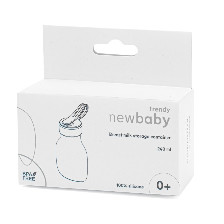 Silikónový zásobník na materské mlieko značky New Baby z rady Trendy spája moderný minimalistický dizajn s praktickým využitím pre každodenné potreby mamičiek.