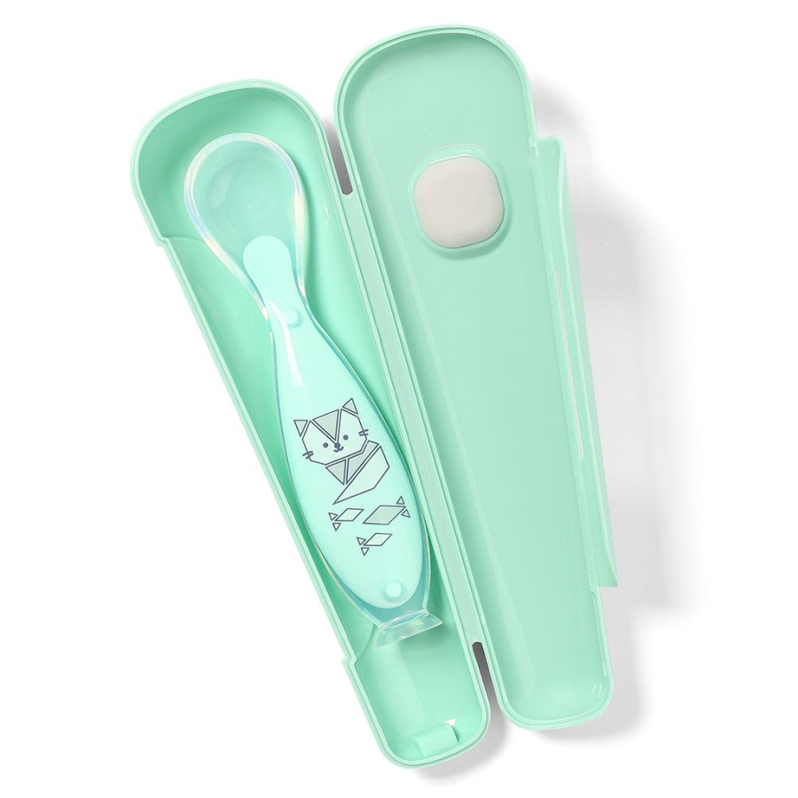 Silikónová lyžička s prísavkou v puzdre je ideálna na doma, na prechádzku alebo na cesty. Má vhodný tvar, ideálny na to, aby ste dieťa naučili jesť samostatne. Vyrobené z vysokokvalitného silikónu určeného na styk s potravinami.