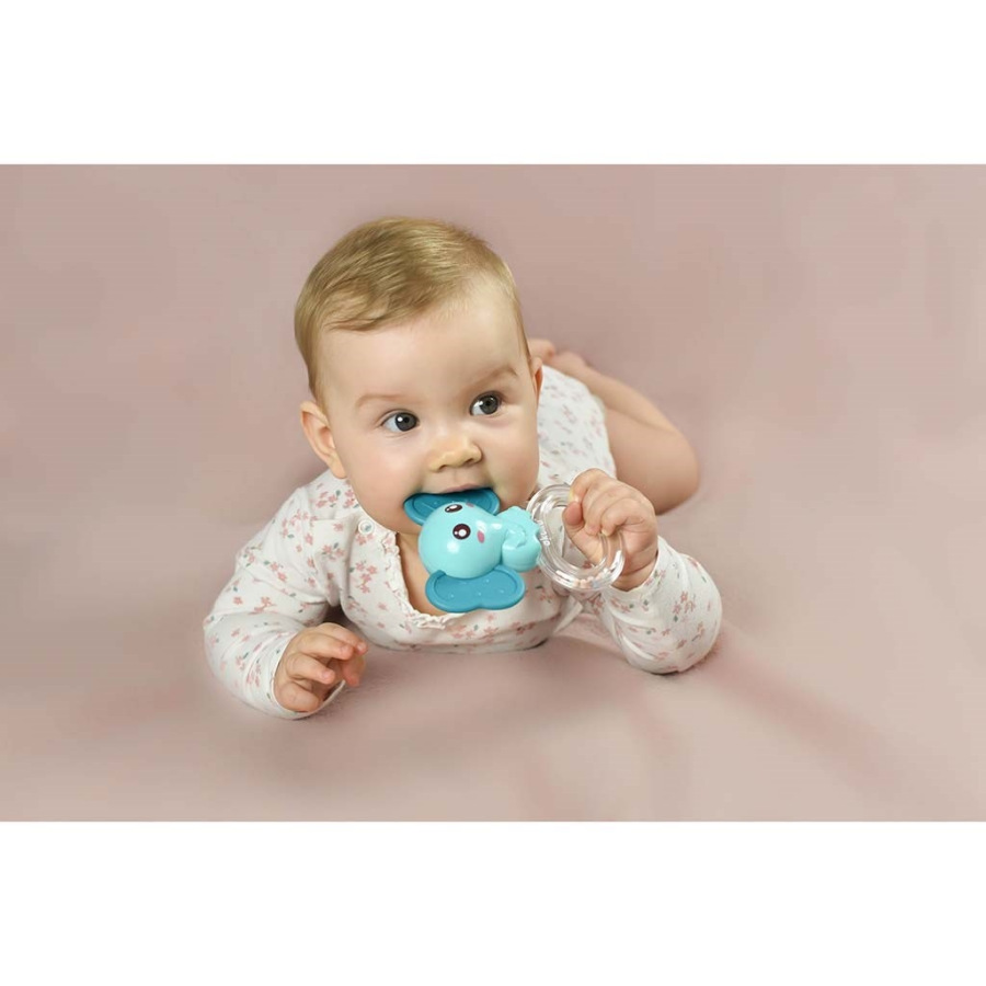 Farebná detská hrkálka. Výška cca 10 cm. Určené pre deti od 3 mesiacov. P>