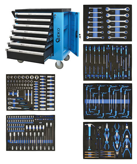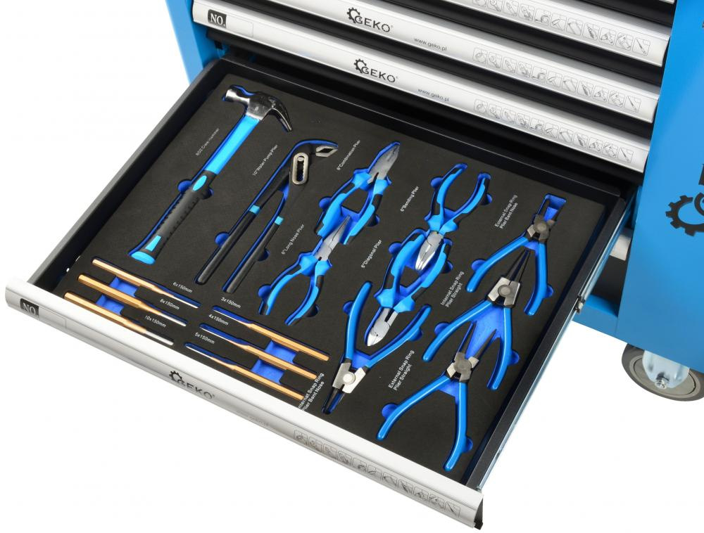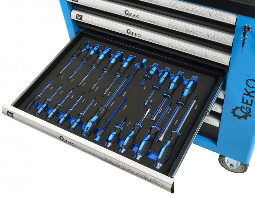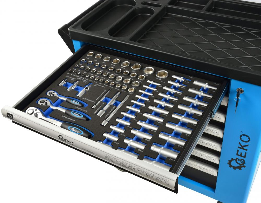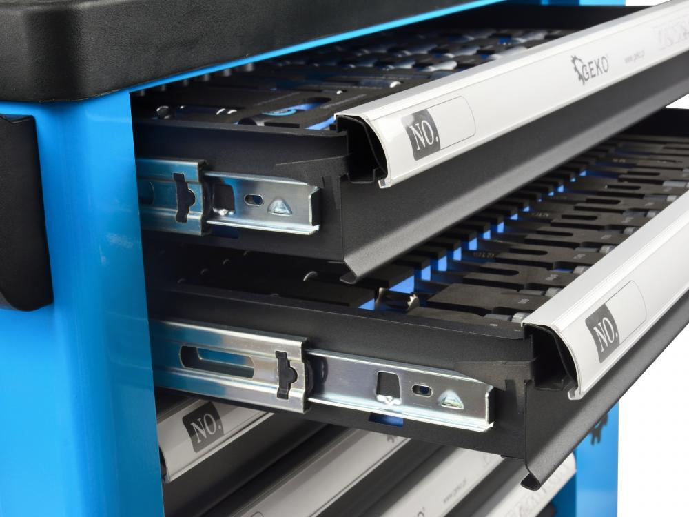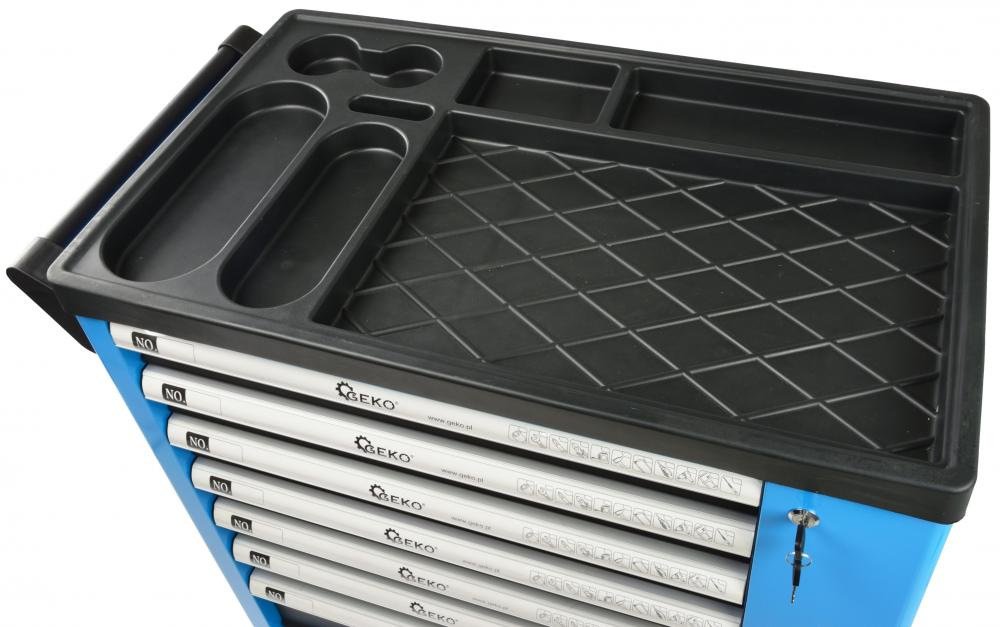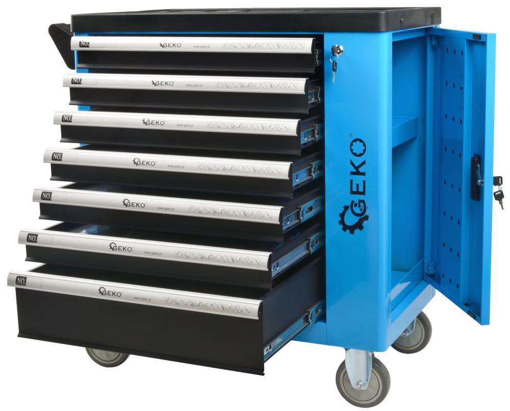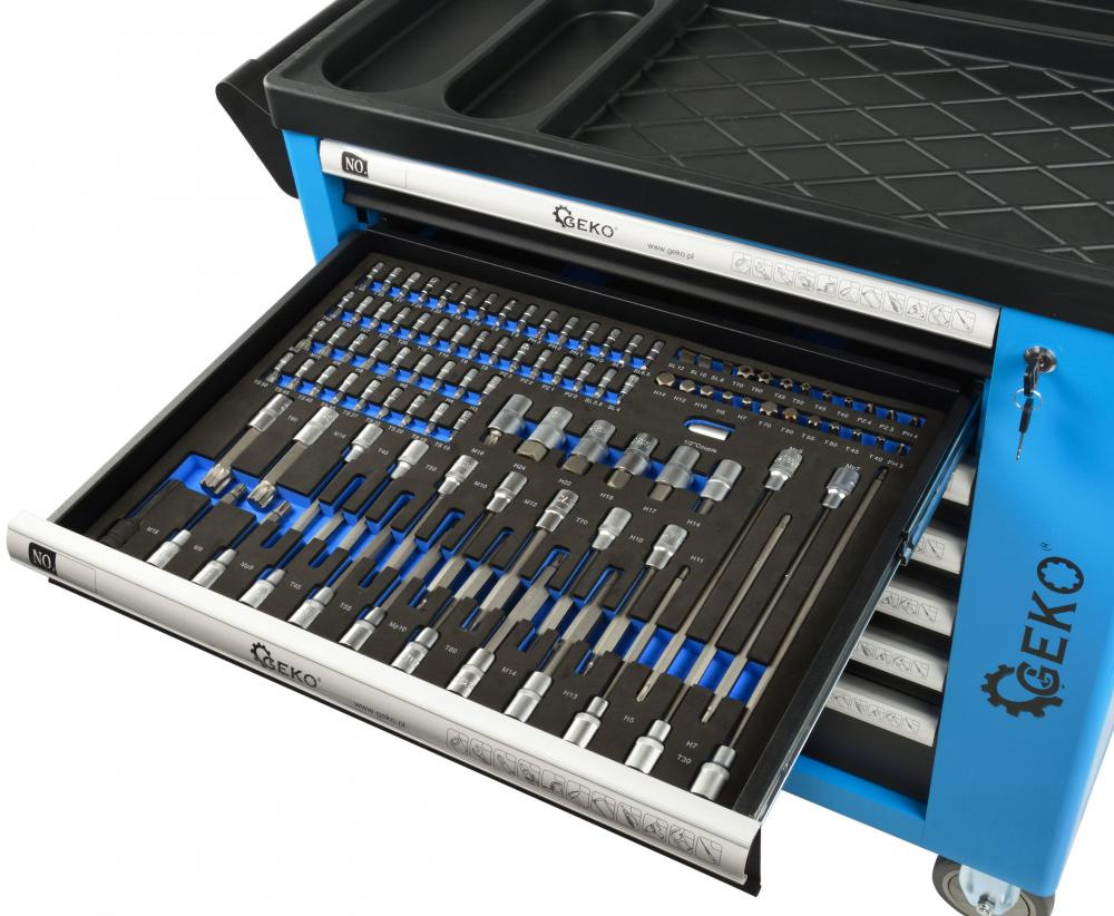 Skrinka na náradie so 7 zásuvkami, vybavená náradím 243 dielov, GEKO