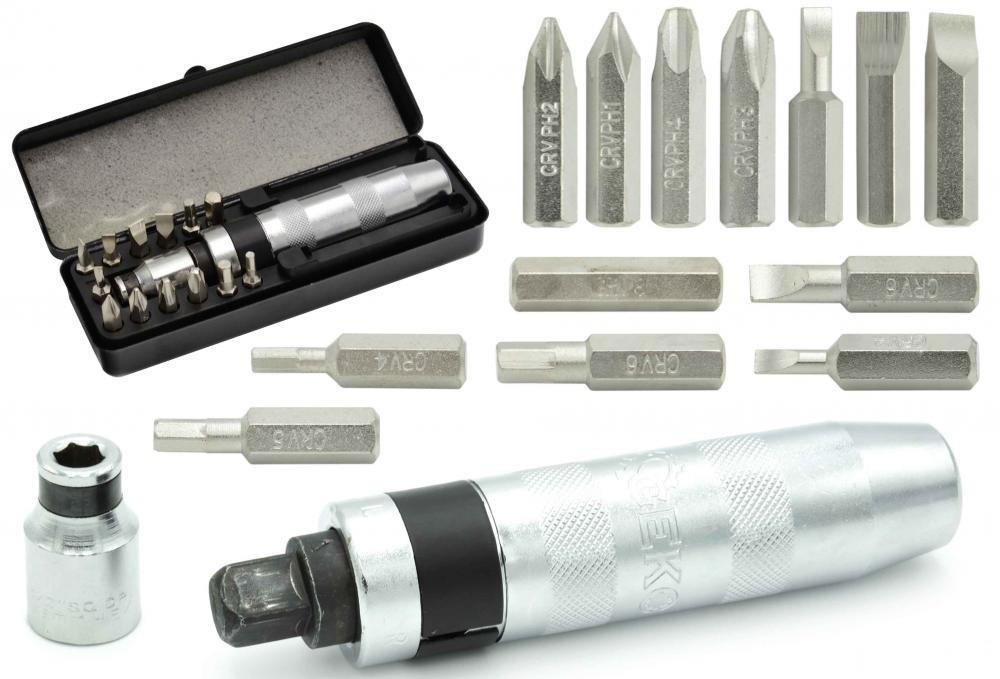 Skrutkovač úderový s bitmi, 15-dielna sada, GEKO