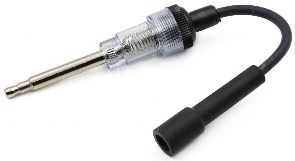 Skúška na kontrolu systému zapaľovania. Prístroj umožňuje ľahkú diagnostiku poškodenia zapaľovacej cievky a kontrolu kvality a sily iskry v zapaľovacej sviečke. Tester sa pripája medzi vysokonapäťový kábel a sviečku.
