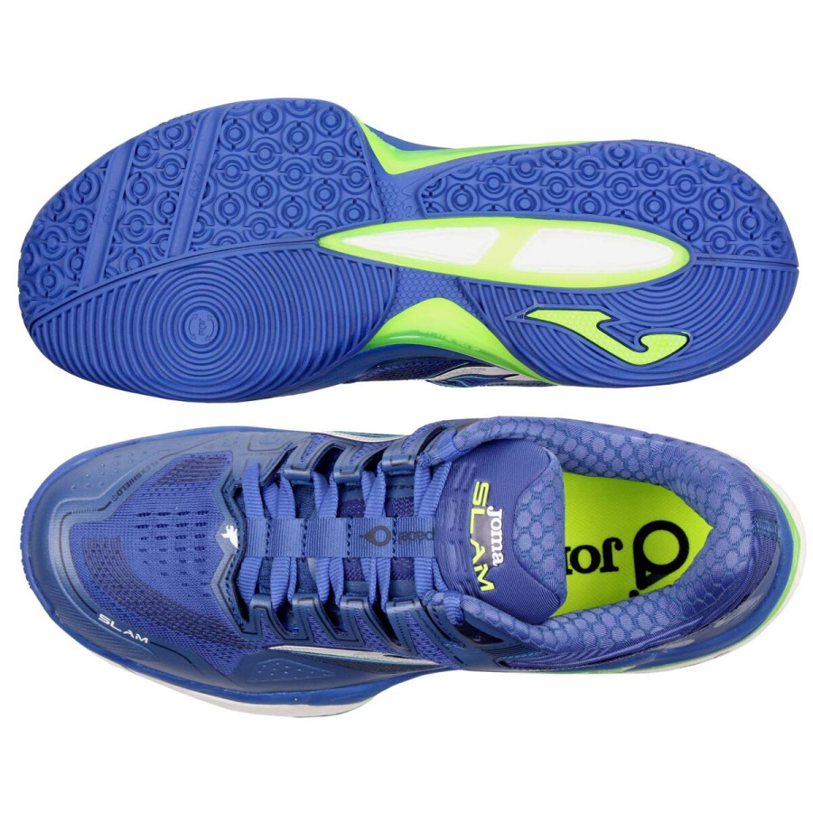 Nový Slam model značky JOMA na padel a tvrdé povrchy je určený pre pravidelných a náročných hráčov. Aj naďalej si zachováva maximálnu úroveň priľnavosti, ochrany, stability a odpruženia. Zvršok je vyrobený z priedušnej sieťoviny, ktorá má elegantnú žakárovú úpravu s VTS perforáciou. Táto technológia umožňuje cirkuláciu vzduchu a zaisťuje tak správnu ventiláciu. Vďaka použitým technológiám SPORTECH a PROTECTION je topánka ľahká, flexibilná a odolná. Medzipodrážka má nový tvar, aj keď stále obsahuje technológiu DUAL REACTIVE, zloženú z horného phylonu a spodného REACTIVE BALL. Dosahuje dokonalú rovnováhu medzi odpružením, reaktivitou a stabilitou, ktorú posilňuje diel STABILIS. Všestranná podošva z gumy DURABILITY, tvorená malými kruhovými výstupkami na zlepšenie odolnosti na tvrdom povrchu. Uľahčuje sklzy počas rýchlej hry. Zahŕňa geometrickú štruktúru ROTATION pre uľahčenie otáčania.