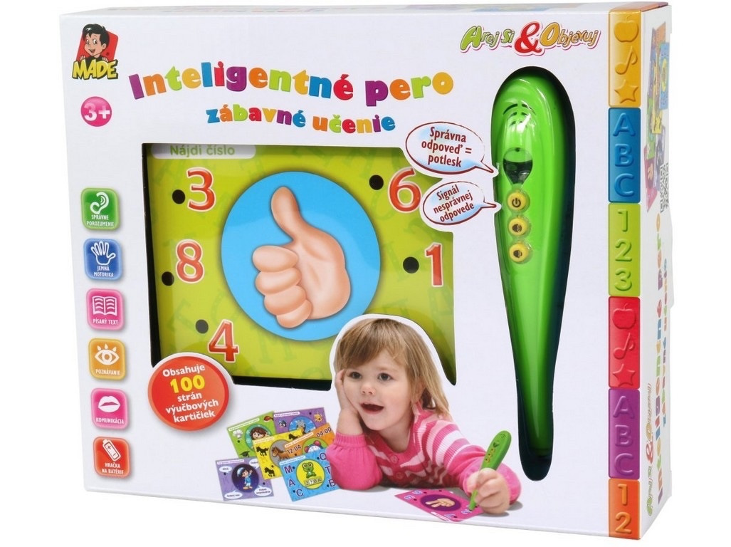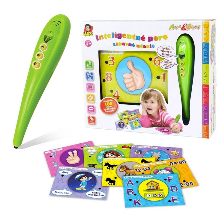 AKCIA! Do vypredania zásob. Určite je pre vás dôležité vzdelanie a rozvoj vašich detičiek. Interaktívne pero je jedným z nástrojov, ktorý pomôže rozvíjať pamäť a logické myslenie vašich najmilších. Obsahuje 100 výukových kariet v slovenčine a pero, ktoré oznámi správnu alebo zlú odpoveď. Voľbu máte medzi zvukovými efektmi alebo iba svetelnými, aby rodičov nebolela hlava. Funguje to úplne jednoducho. Priložíte pero k jednej z možných odpovedí na karte a okamžite dostanete signál, či je odpoveď správna alebo nie. Deti sa budú baviť a súčasne sa vzdelávať v niekoľkých oblastiach.
