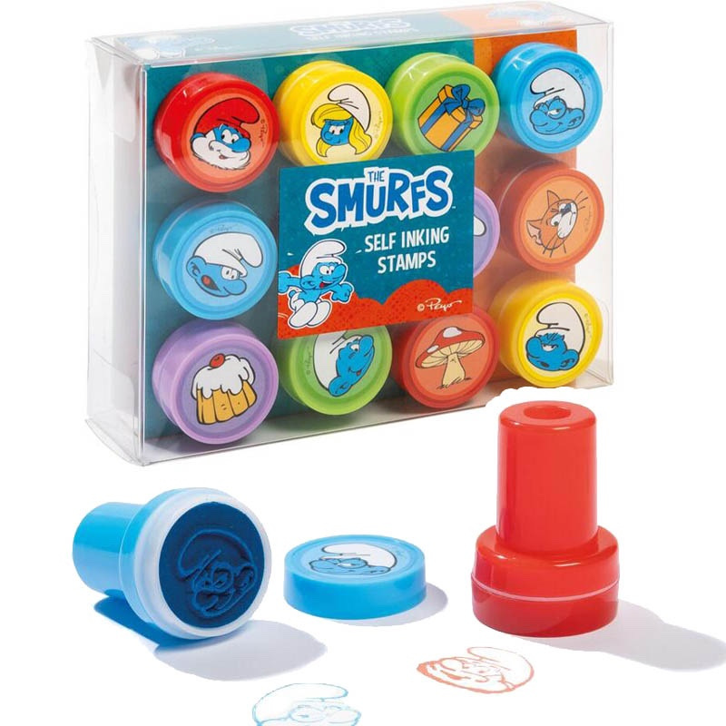 Šmoulová razítka 12 ks. Samotiskací atramentová razítka Šmoulové. 12 motivů v sadě.