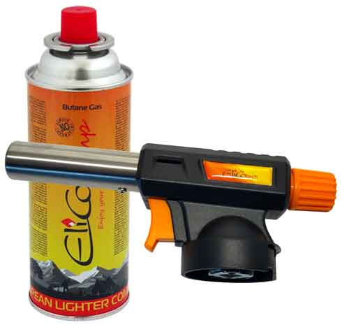 Spájkovacia lampa s piezo zapaľovačom a kartušou 220g, otočný uzáver, ELICO