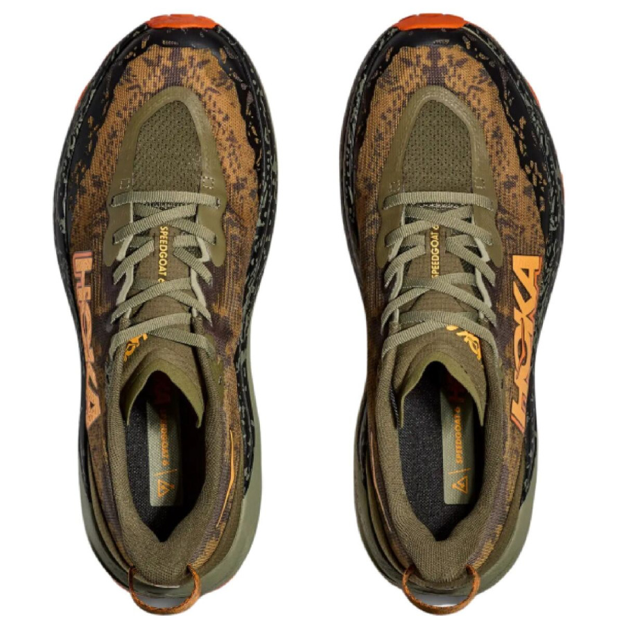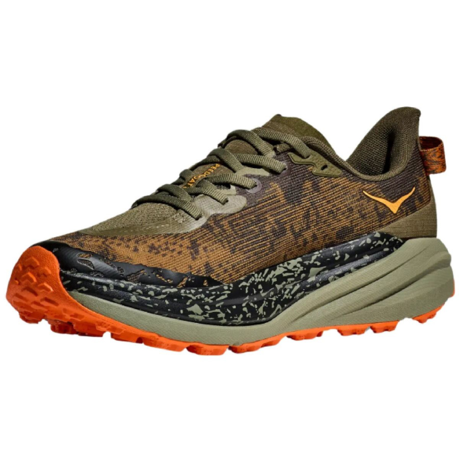 Hoka One One Speedgoat je jeden z najpopulárnejších modelov, ktorý je navrhnutý do technicky náročnejšieho terénu. Už šiesty rad ponúka pohodlie vďaka osvedčenému tlmeniu a skvelú trakciu aj na drsnejšom povrchu vďaka technológii Vibram® Megagrip s konštrukciou Traction Lug. Model Speedgoat 6 si zachováva rovnakú výšku podrážky a tvar kolísky ako predchádzajúci model, využíva ľahšiu zmes materiálu v medzipodrážke a priedušný zvršok z tkanej textílie pre ľahký a zároveň komfortný beh. - ľahký tkaný zvršok