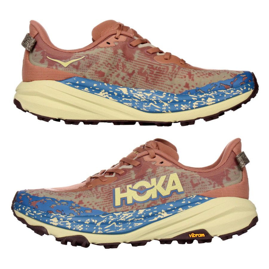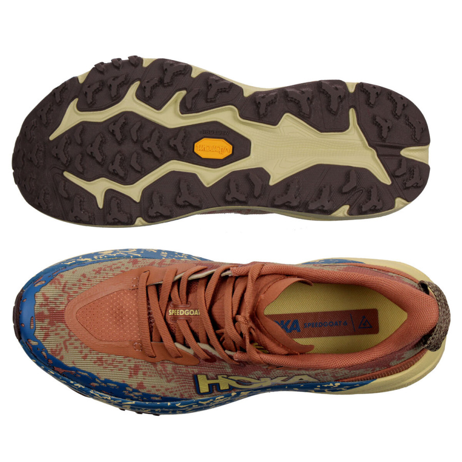 Hoka One One Speedgoat je jeden z najpopulárnejších modelov, ktorý je navrhnutý do technicky náročnejšieho terénu. Už šiesty rad ponúka pohodlie vďaka osvedčenému tlmeniu a skvelú trakciu aj na drsnejšom povrchu vďaka technológii Vibram® Megagrip s konštrukciou Traction Lug. Model Speedgoat 6 si zachováva rovnakú výšku podrážky a tvar kolísky ako predchádzajúci model, využíva ľahšiu zmes materiálu v medzipodrážke a priedušný zvršok z tkanej textílie pre ľahký a zároveň komfortný beh. - ľahký tkaný zvršok