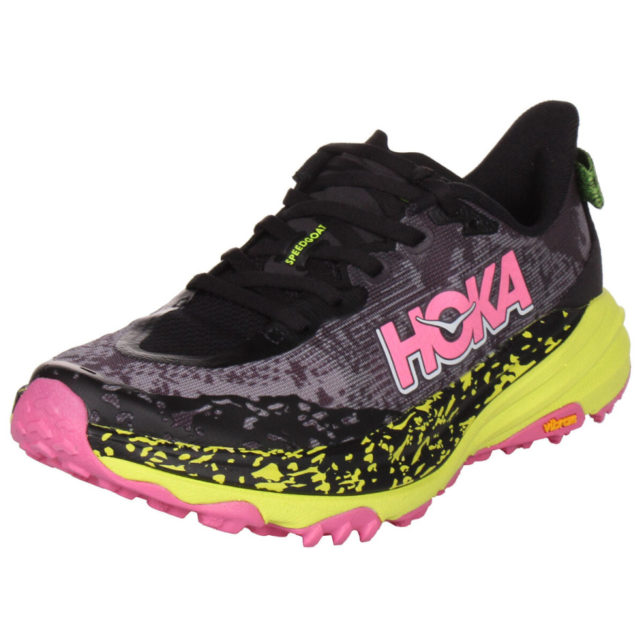 Hoka One One Speedgoat je jeden z najpopulárnejších modelov, ktorý je navrhnutý do technicky náročnejšieho terénu. Už šiesty rad ponúka pohodlie vďaka osvedčenému tlmeniu a skvelú trakciu aj na drsnejšom povrchu vďaka technológii Vibram® Megagrip s konštrukciou Traction Lug. Model Speedgoat 6 si zachováva rovnakú výšku podrážky a tvar kolísky ako predchádzajúci model, využíva ľahšiu zmes materiálu v medzipodrážke a priedušný zvršok z tkanej textílie pre ľahký a zároveň komfortný beh. - ľahký tkaný zvršok