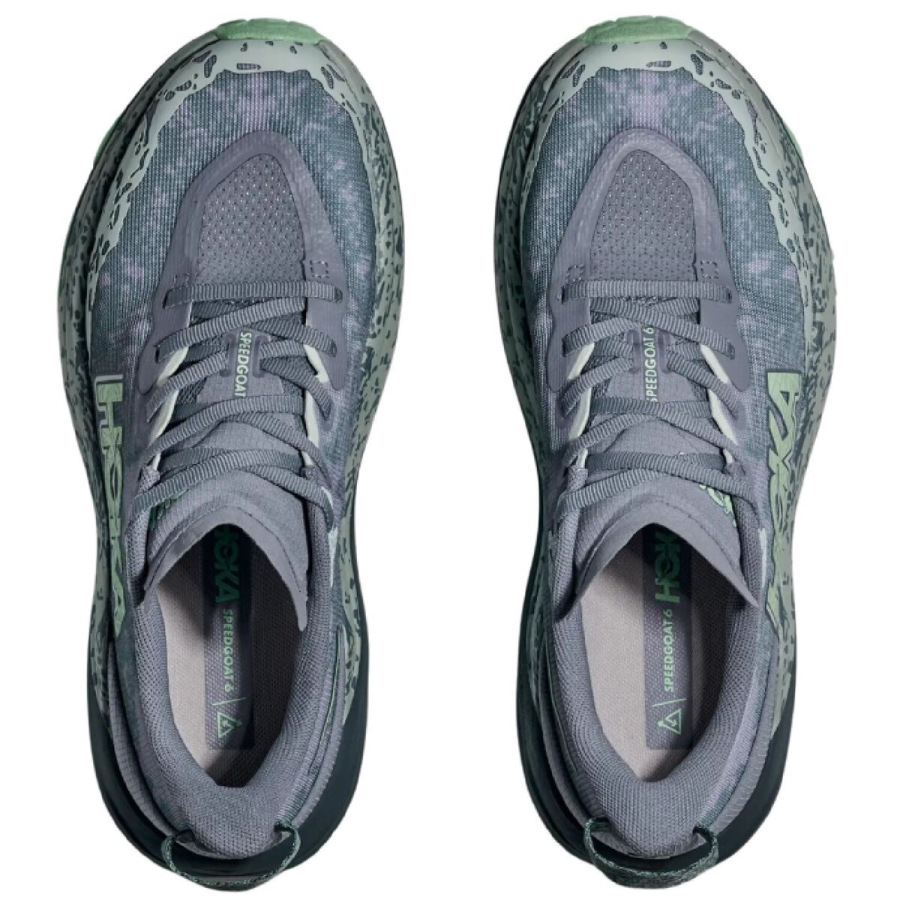 Hoka One One Speedgoat je jeden z najpopulárnejších modelov, ktorý je navrhnutý do technicky náročnejšieho terénu. Už šiesty rad ponúka pohodlie vďaka osvedčenému tlmeniu a skvelú trakciu aj na drsnejšom povrchu vďaka technológii Vibram® Megagrip s konštrukciou Traction Lug. Model Speedgoat 6 si zachováva rovnakú výšku podrážky a tvar kolísky ako predchádzajúci model, využíva ľahšiu zmes materiálu v medzipodrážke a priedušný zvršok z tkanej textílie pre ľahký a zároveň komfortný beh. - ľahký tkaný zvršok