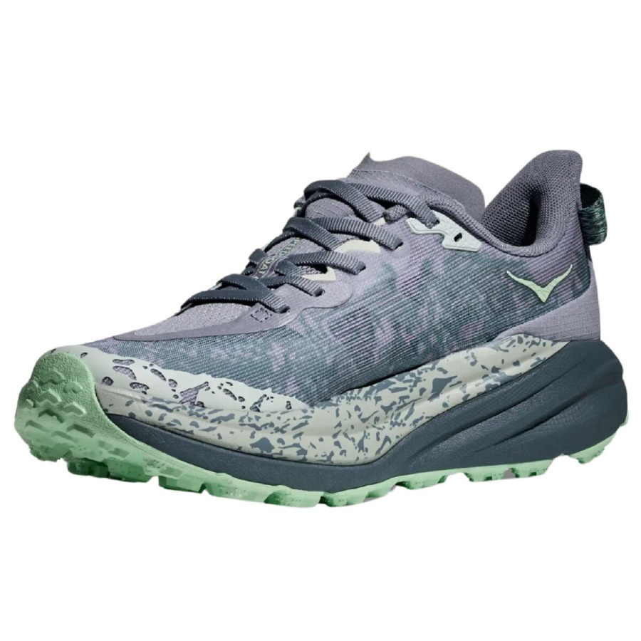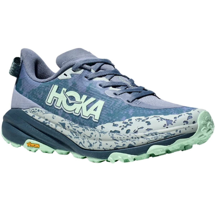Hoka One One Speedgoat je jeden z najpopulárnejších modelov, ktorý je navrhnutý do technicky náročnejšieho terénu. Už šiesty rad ponúka pohodlie vďaka osvedčenému tlmeniu a skvelú trakciu aj na drsnejšom povrchu vďaka technológii Vibram® Megagrip s konštrukciou Traction Lug. Model Speedgoat 6 si zachováva rovnakú výšku podrážky a tvar kolísky ako predchádzajúci model, využíva ľahšiu zmes materiálu v medzipodrážke a priedušný zvršok z tkanej textílie pre ľahký a zároveň komfortný beh. - ľahký tkaný zvršok