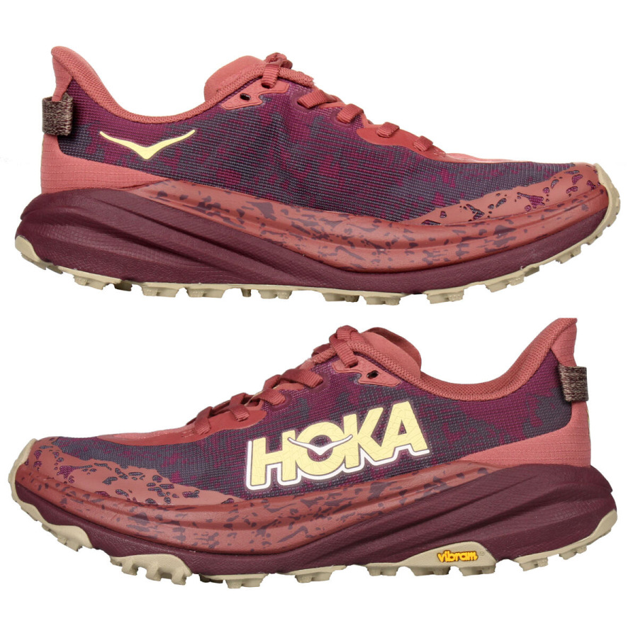 Hoka One One Speedgoat je jeden z najpopulárnejších modelov, ktorý je navrhnutý do technicky náročnejšieho terénu. Už šiesty rad ponúka pohodlie vďaka osvedčenému tlmeniu a skvelú trakciu aj na drsnejšom povrchu vďaka technológii Vibram® Megagrip s konštrukciou Traction Lug. Model Speedgoat 6 si zachováva rovnakú výšku podrážky a tvar kolísky ako predchádzajúci model, využíva ľahšiu zmes materiálu v medzipodrážke a priedušný zvršok z tkanej textílie pre ľahký a zároveň komfortný beh. - ľahký tkaný zvršok