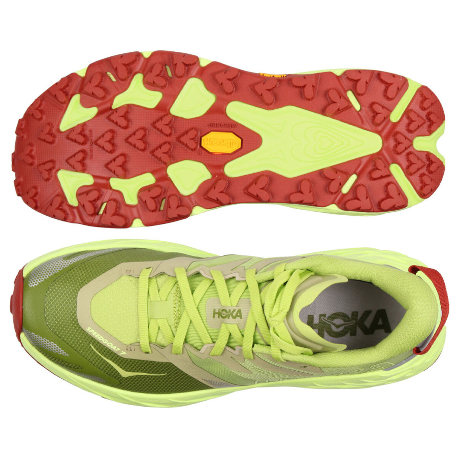 Hoka One One Speedgoat je pojem v bežeckej obuvi do terénu. Už siedma séria je vyrobená s novou medzipodrážkou SCF pre väčší komfort a stabilitu na nerovnom povrchu. 5 mm trakčné výstupky zaisťujú pevný záber na strmom, klzkom a kamenistom povrchu. Vďaka vrchnej tkanine sú topánky ľahké a priedušné. Plochý jazyk s dvojitým klinom zlepšuje stabilitu strednej časti chodidla. Ak hľadáte kvalitné a spoľahlivé topánky do terénu, Hoka One One Speedgot 7 sú presne pre vás! SCF EVA pena poskytuje maximálne odpruženie