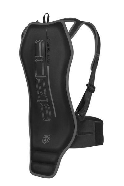 Chránič chrbta Etape SPINE sa skvele prispôsobí telu a zaistí tak maximálne pohodlie a bezpečnosť pre všetkých vyznávačov zimných športov, ktorí hľadajú kvalitnú ochranu a pritom kladú dôraz aj na komfort. Zárukou pre zaistenie maximálnej bezpečnosti je schválenie podľa európskej normy EN 1621-2. Do výbavy chrbtice patrí 4-vrstvová absorpčná pena ERGOFLEX 4X™ pre maximálnu ochranu, 3D ventilačný materiál na chrbte pre ideálny komfort, anatomický tvar, nastaviteľné anatomické popruhy a nastaviteľné elastické stiahnutie v páse. SPINE: