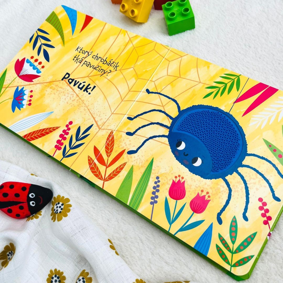 Objavujte hmyzie kráľovstvo nielen očami, ale aj hmatom. Kniha Spoznaj dotykom – Veselých chrobáčikov približuje deťom svet hmyzu prostredníctvom veselých otázok ako: Ktorý hmyz opeľuje kvietky? Ktorý chrobáčik tká pavučiny? Ktoré zvieratko obúva veľa topánok? Okrem pomenovaní zvierat sa deti zoznámia aj s ich siluetami v pestrofarebnom 3D prevedení, ktoré podporuje jemnú motoriku a hmatové zručnosti. Výrezy s hmatovými prvkami stimulujú zmysly.