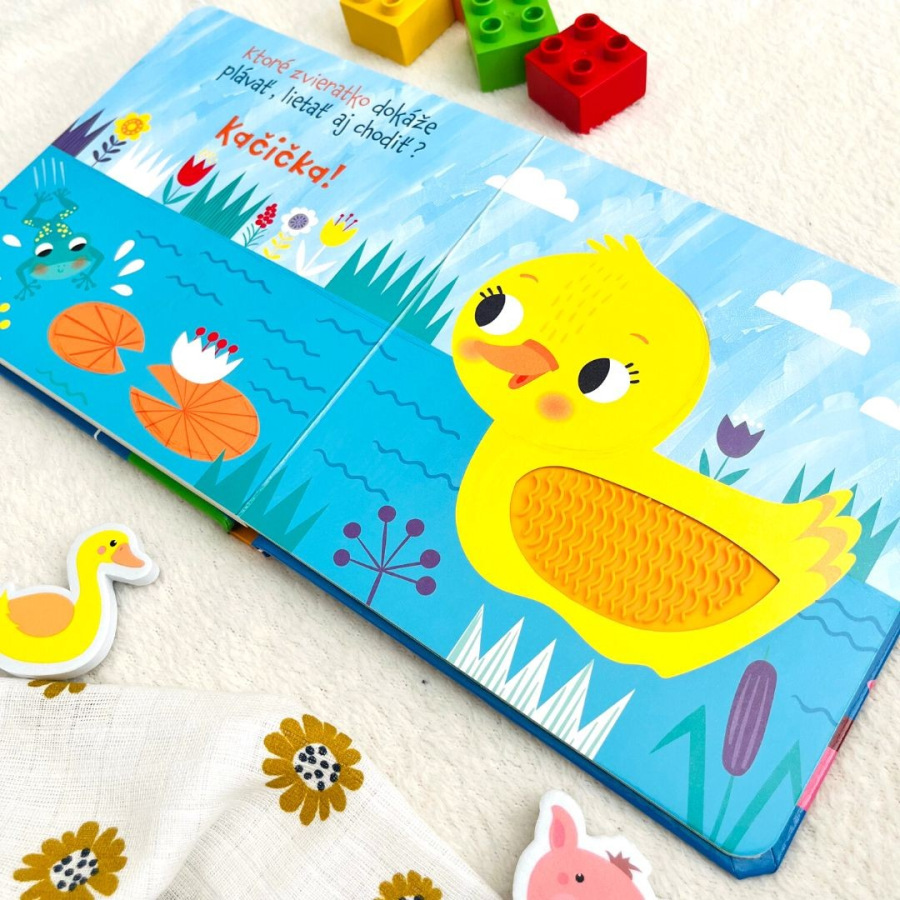 Nahliadnite do gazdovského dvora nielen očami, ale aj hmatom. Kniha Spoznaj dotykom – Život na farme približuje deťom obyvateľov farmy prostredníctvom veselých otázok zameraných na prvé poznávanie. Okrem pomenovaní zvierat sa deti zoznámia aj s ich siluetami v pestrofarebnom 3D prevedení, ktoré podporuje jemnú motoriku a hmatové zručnosti. Výrezy s hmatovými prvkami stimulujú zmysly.