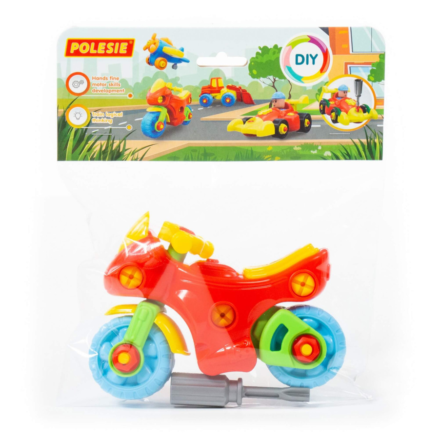 Šróbovacia motorka, je hračka pre malých technikov, ktorí radi skladajú a objavujú. Deti si ju môžu rozobrať a znovu poskladať pomocou priloženého náradia. Má rozmery 195х65х210 mm. Na výber z dvoch farebných variánt. Cena je za kus. Vhodné pre deti vo veku 3+ rokov.