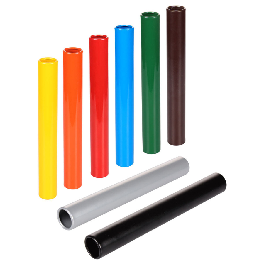 Štafetové kolíky Merco vhodné na tréning. Sú vyrobené z ľahkého eloxovaného hliníka so zaoblenými hranami. Ide o seniorské prevedenie, ktoré ponúkame v osemfarebnom sete. Jeden kolík má dĺžku 30 cm, priemer 38 mm a hmotnosť približne 78 g.