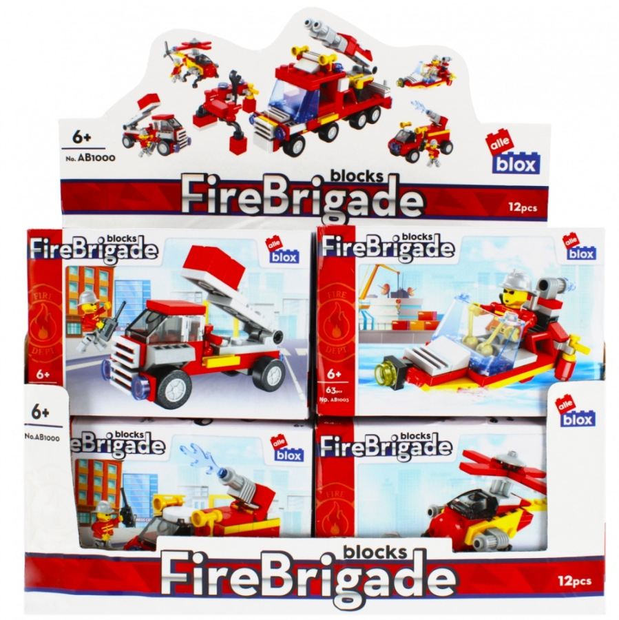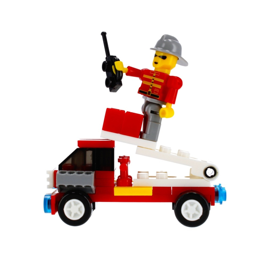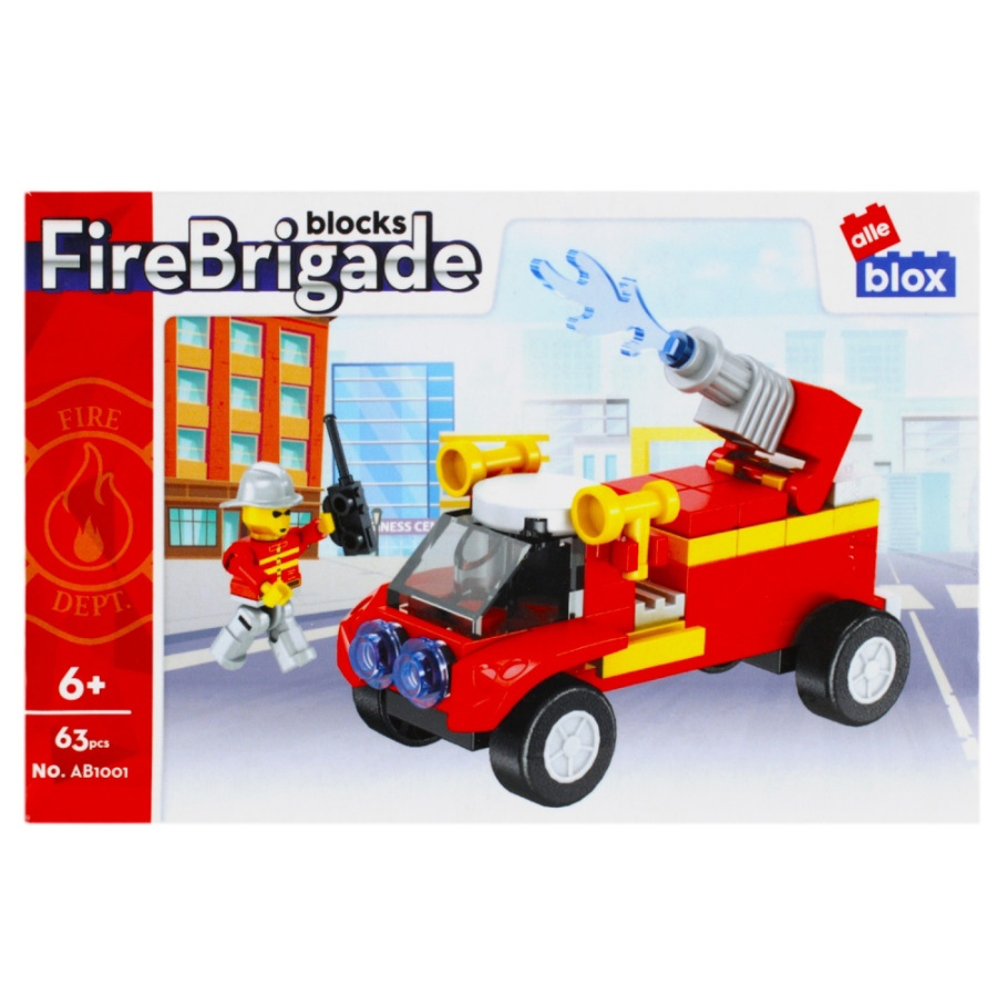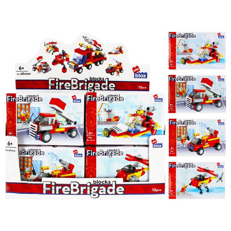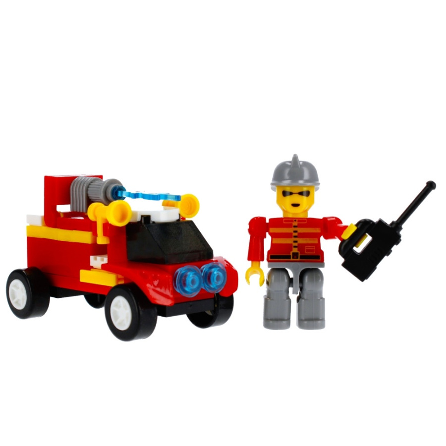 Hasičské vozidlo s postavičkou Stavebnica, balenie má rozmery 15x10x5 cm. Na výber zo štyroch variánt. Balené v boxe po 12 ks. Cena je za kus, ktorý obsahuje od 63 alebo 64 prvkov a montážny návod. Vhodné pre deti 6+.