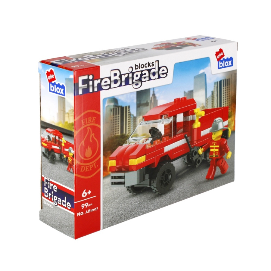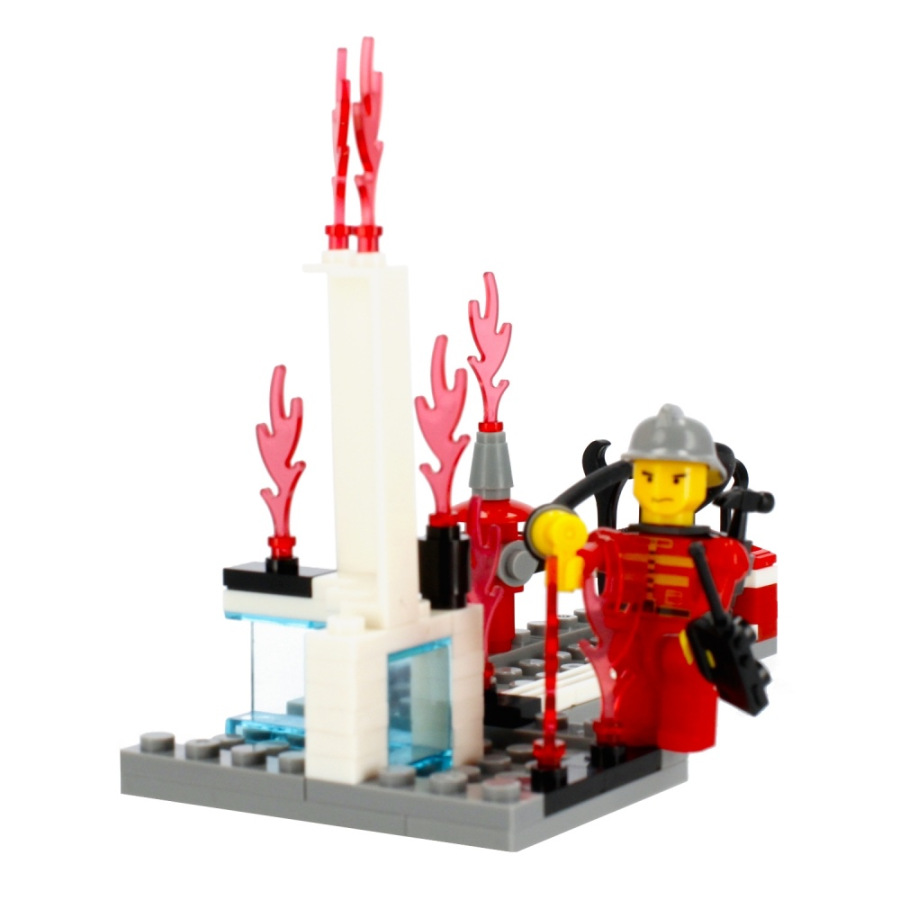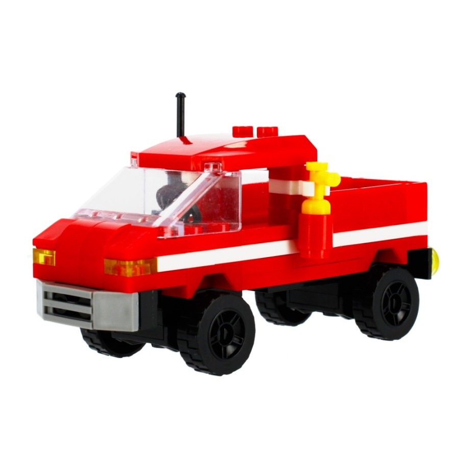 Hasič panáčik s vozidlom Stavebnica, má rozmery 12x5x7 cm. Na výber zo štyroch variánt. Balené v boxe po 12 ks. Cena je za kus, ktorý obsahuje od 96 až 104 prvkov a montážny návod. Vhodné pre deti 6+.