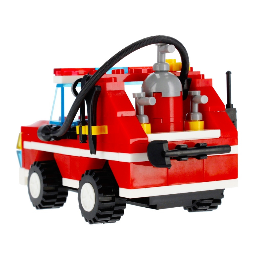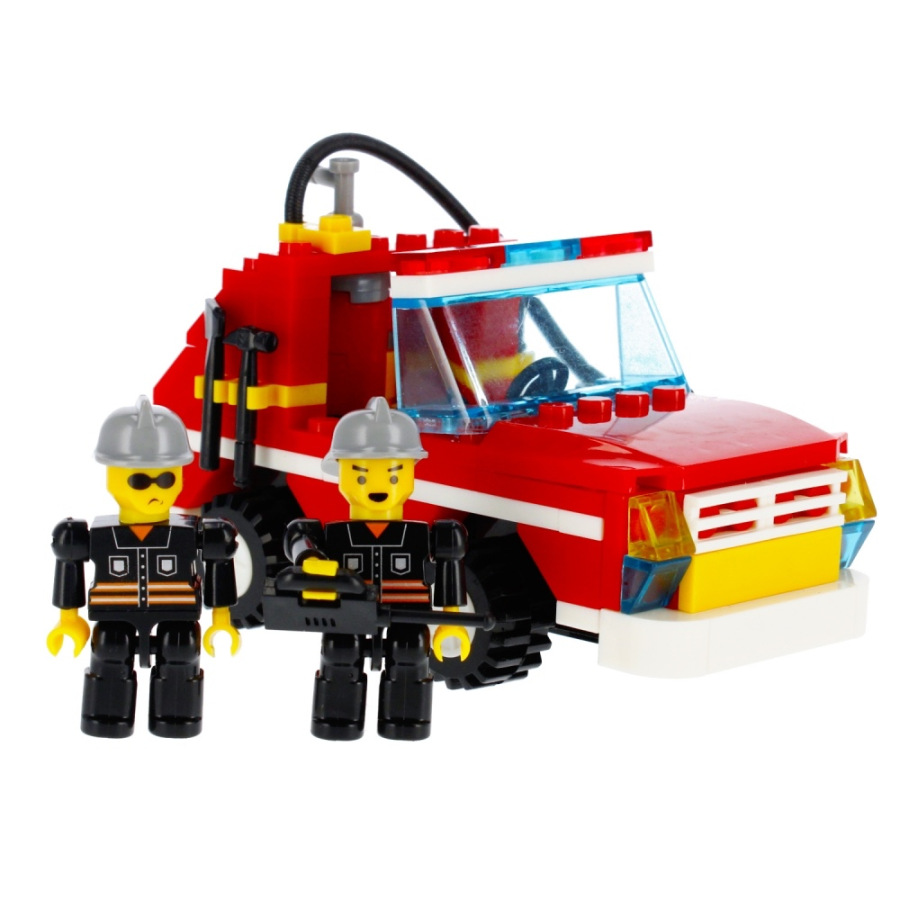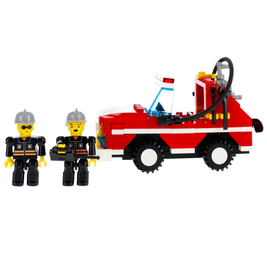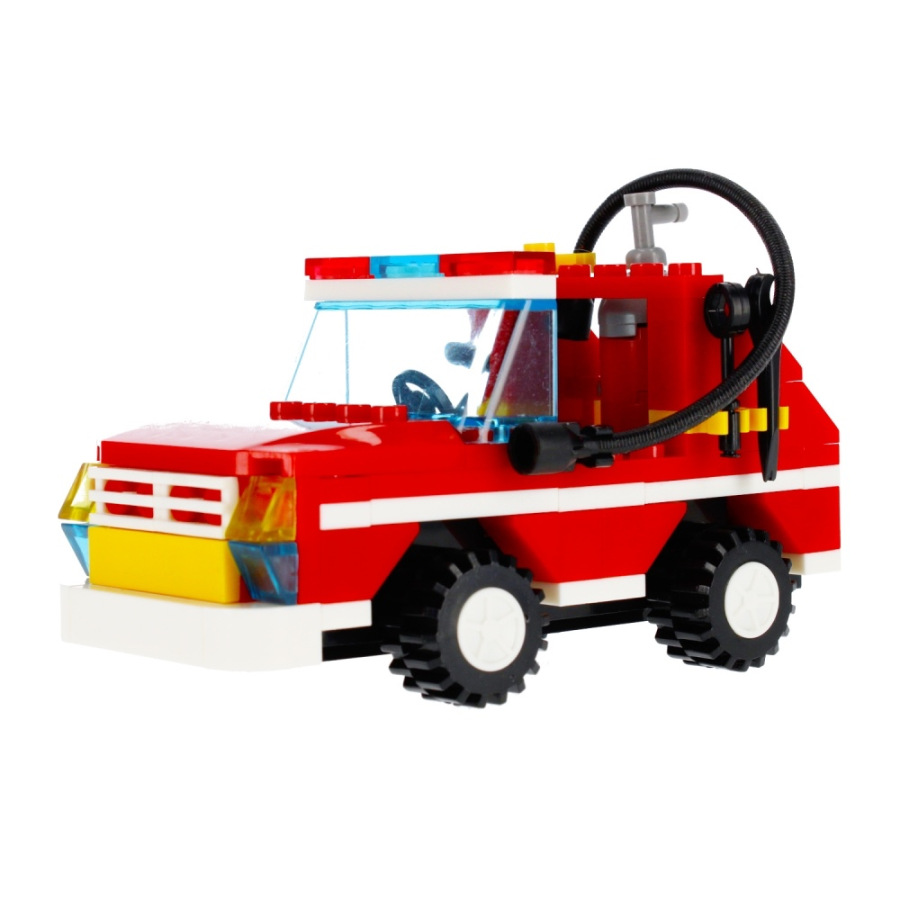 Hasičské vozidlo s hadicou a postavičkami Stavebnica, má rozmery 12x6x6 cm. Cena je za kus, ktorý obsahuje 140 prvkov a montážny návod. Vhodné pre deti 6+.