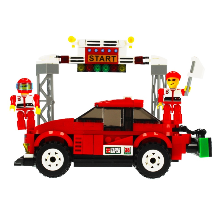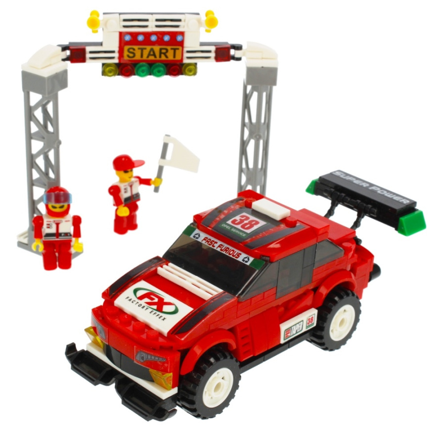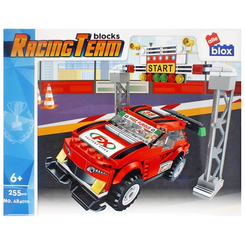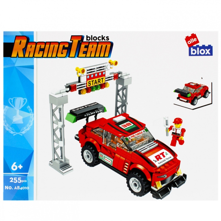 Pretekárske auto s príslušenstvom Stavebnica, balenie má rozmery 16x7x7 cm. Cena je za kus, ktorý obsahuje 255 prvkov a montážny návod. Vhodné pre deti 6+.