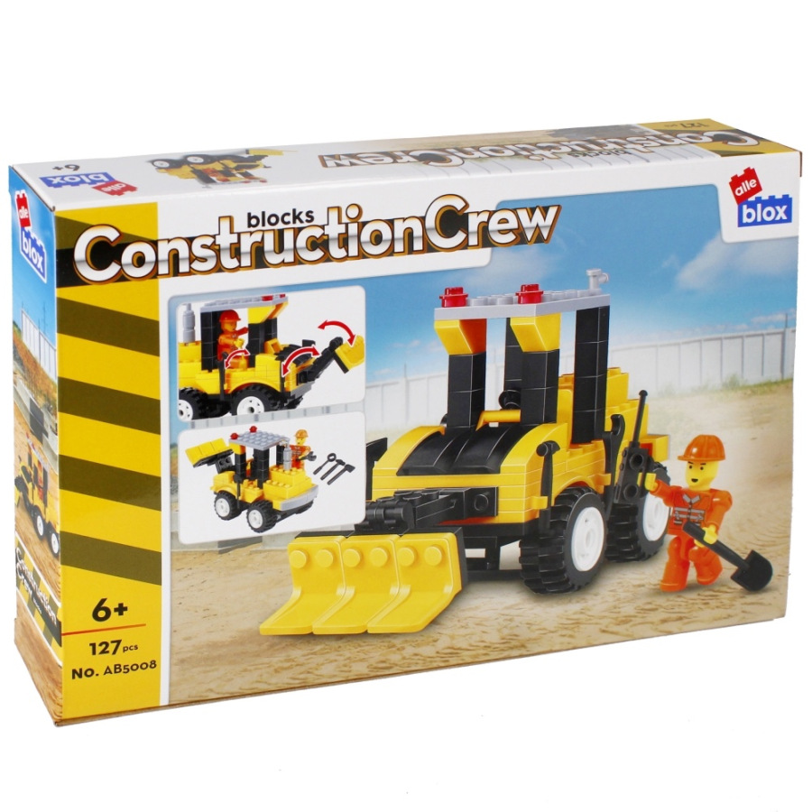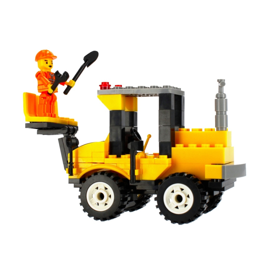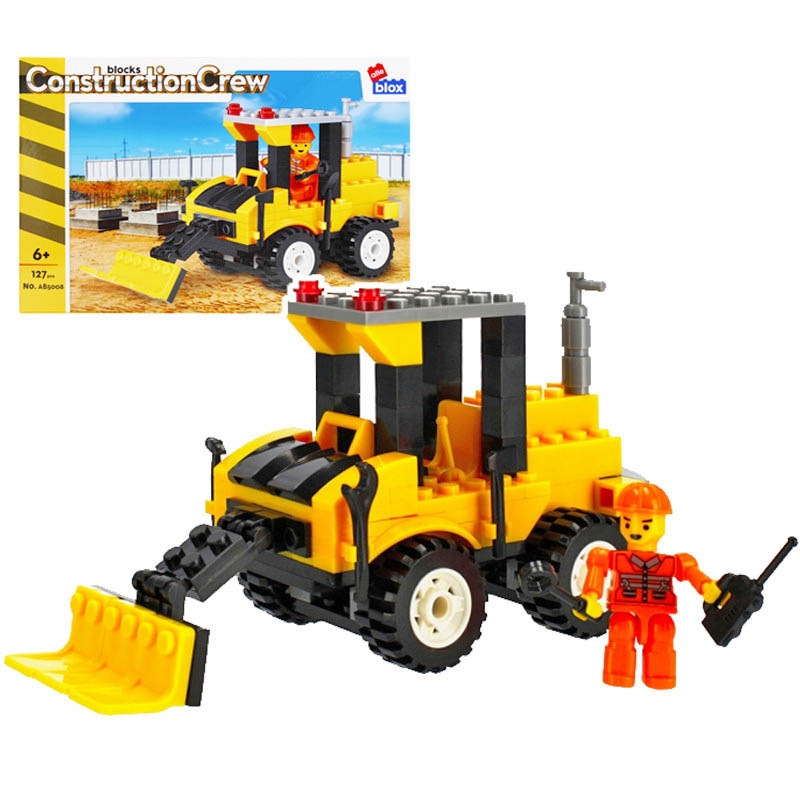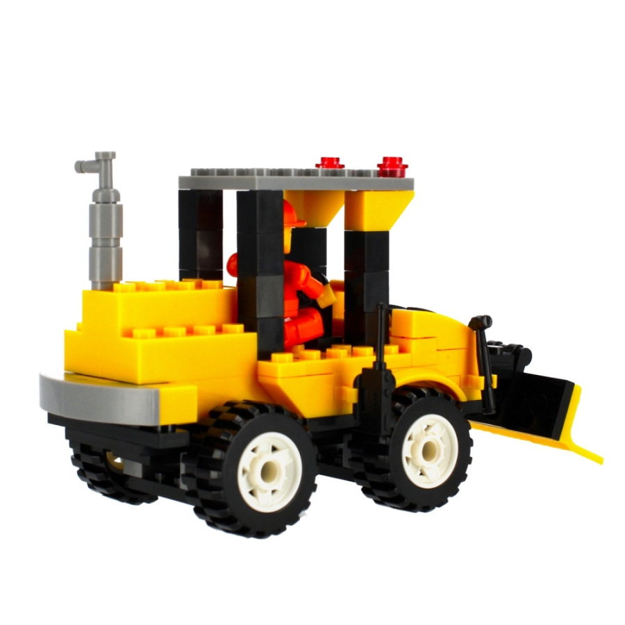 Stavebný stroj s panáčikom Stavebnica, balenie má rozmery 16x8x6cm. Cena je za kus, ktorý obsahuje 127 prvkov a montážny návod. Vhodné pre deti 6+.