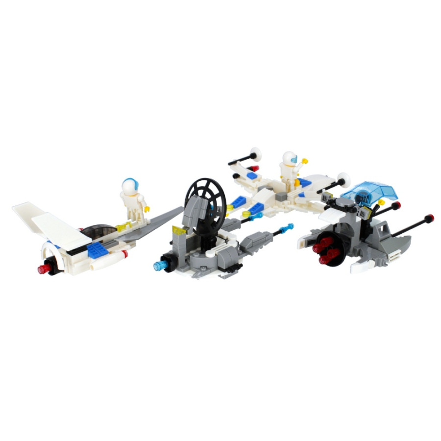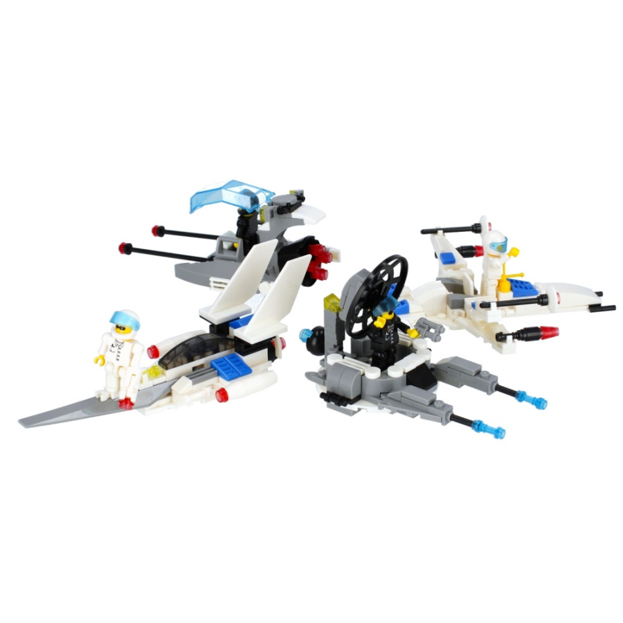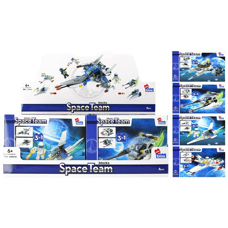 Vesmírna stíhačka Stavebnica, má rozmery 25x9x16 cm. Na výber zo štyroch variánt. Balené v boxe po 8 ks. Cena je za kus, ktorý obsahuje od 97 do 103 prvkov a montážny návod. Vhodné pre deti 6+.