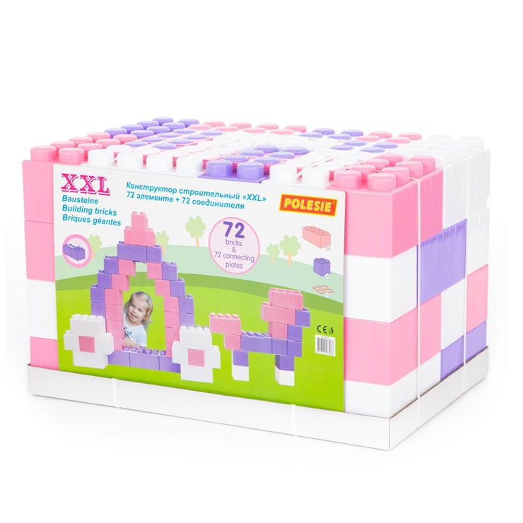 Stavebnica XXL s konektormi 72 + 72 ks má farebné časti s rozmermi 21,5x10 a 5x12 cm. Hračka je certifikovaná pre deti od 1 roku veku, vyrobená od renomovanej značky Wader quality toys. Konektory slúžia na zabezpečenie väčšej pevnosti zloženého motívu