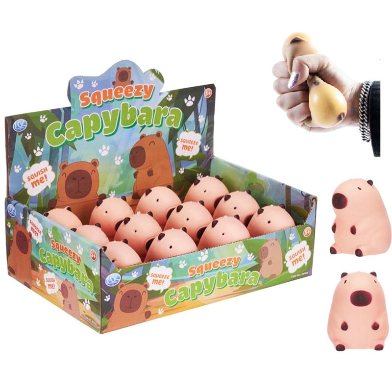 Stláčacia kapybara, má rozmer 8 cm. Na výber z viacerých variánt. Balené v boxe po 12 kusov. Cena je za kus. Vhodné pre deti vo veku 3+.
