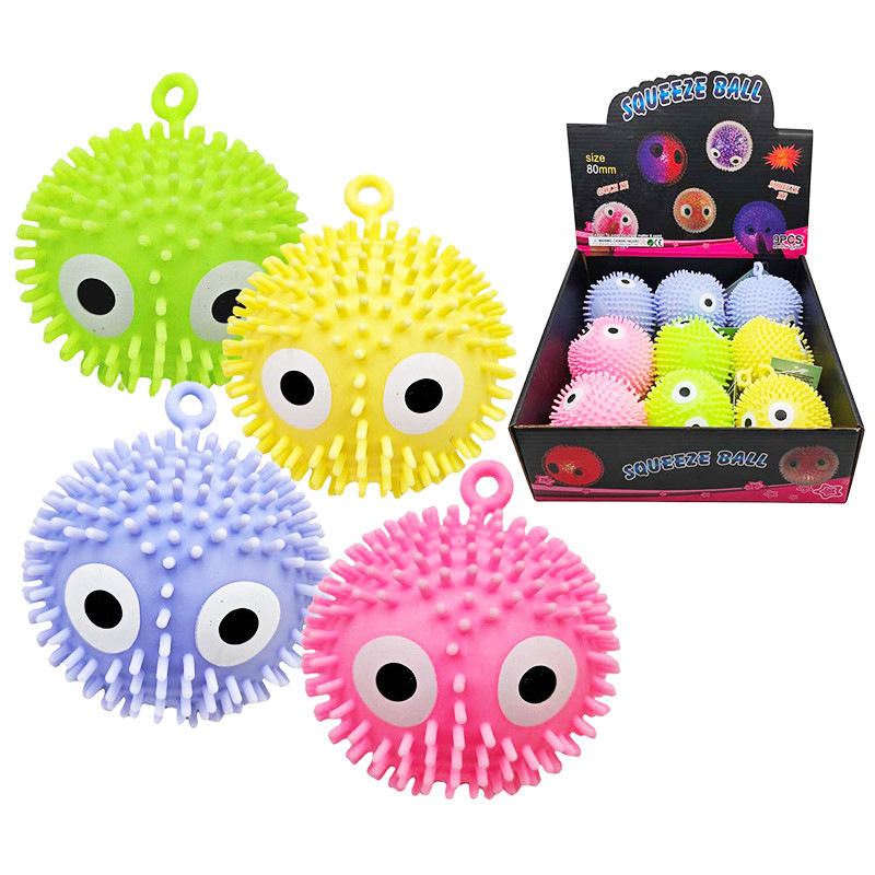 Stláčacia okatá lopta, veselá antistresová hračka na stláčanie a hranie. Na výber je z niekoľkých farieb. Má rozmery 8 cm. Balené v boxe po 9 ks. Cena je za kus. Vhodné pre deti vo veku 3+ rokov.