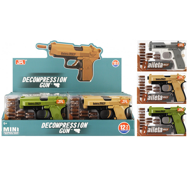Strielajúca pištoľ, zaručuje skvelú zábavu pre každého malého akčného fanúšika! Má rozmery 12x18x3 cm. Na výber z niekoľkých variánt. Balené v displeji po 12 kusoch. Cena je za kus. Vhodné pre deti vo veku 6+ rokov.