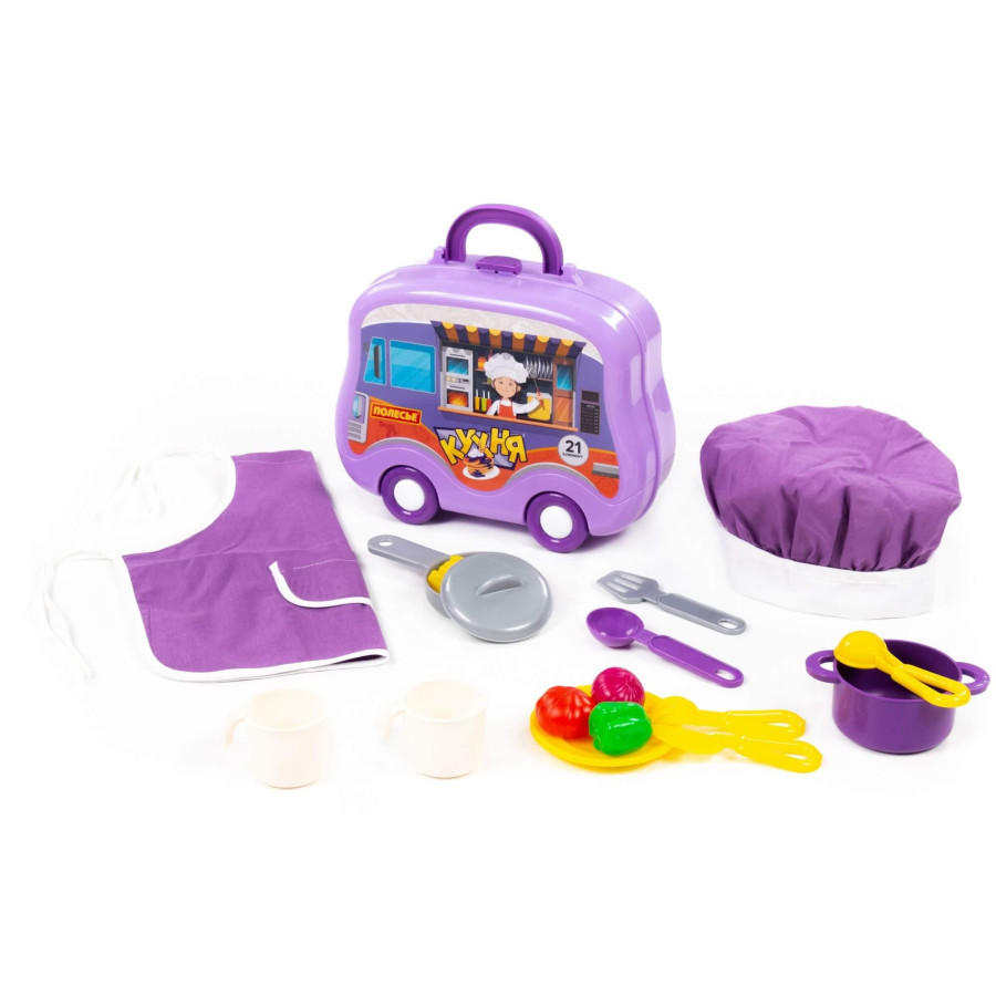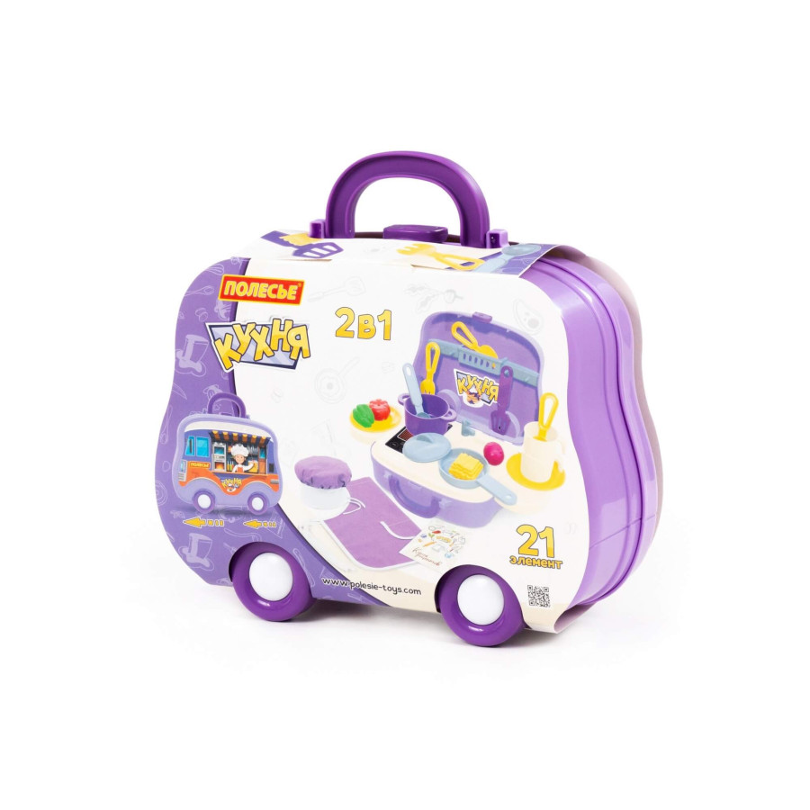 So žiarivou sadou detského riadu od firmy Polesie bude mať dieťa možnosť vymýšľať ešte zaujímavejšie príbehy pre zábavné hry samotné alebo v priateľskej spoločnosti. Všetky prvky súpravy (21 kusov) sú umiestnené v originálnom kufríku na kolieskach. Súprava obsahuje: