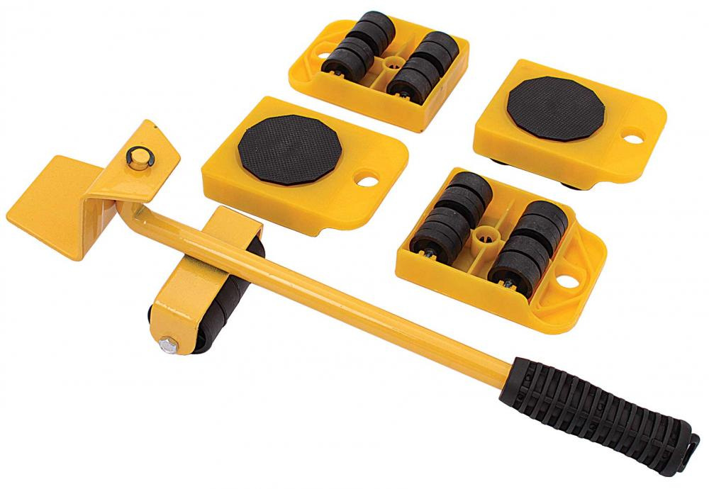- Súprava na zdvíhanie a presúvanie nábytku, ktorá sa skladá z 1 výťahu s pákou a 4 plošín s kolieskami.