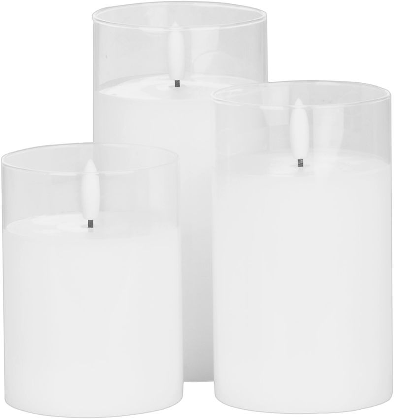 Sviečka MagicHome Vianoce, vosk, 1xLED teplá biela, pohyblivý plameň, 7.5x10/12.5/15 cm, 3xAAA