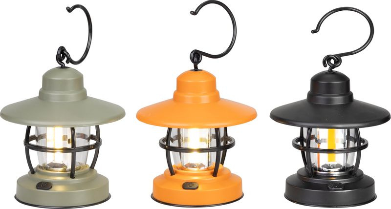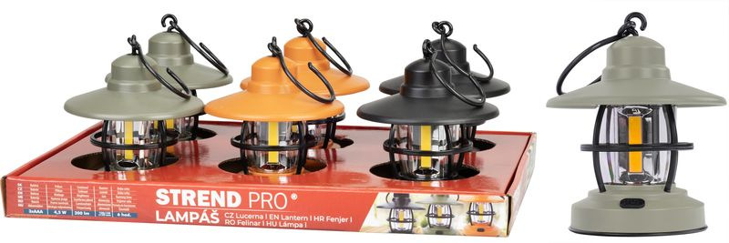 Kompaktné prenosné svietidlo Strend Pro v retro štýle lampášika je vhodné najmä na jednoduché dekoračné osvetlenie dvora a záhrady, no svoje využitie nájme aj pri kempingových aktivitách. Môže poslúžiť aj ako núdzové svetlo pri výpadku elektriny. Napájanie na 3xAAA batérie, ktoré nie sú súčasťou balenia. Mix 3 farieb - olivová, oranžová a čierna. Rozmery : 108x108x130 mm. Svietivosť : 200 lm.